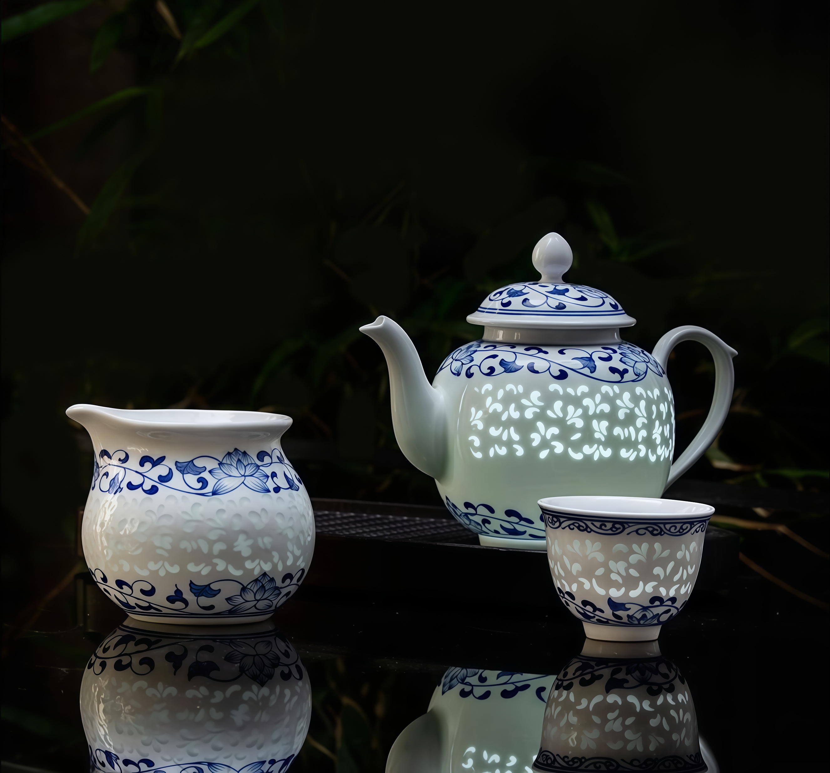 Green Hand-Painted Ice Lotus Teapot