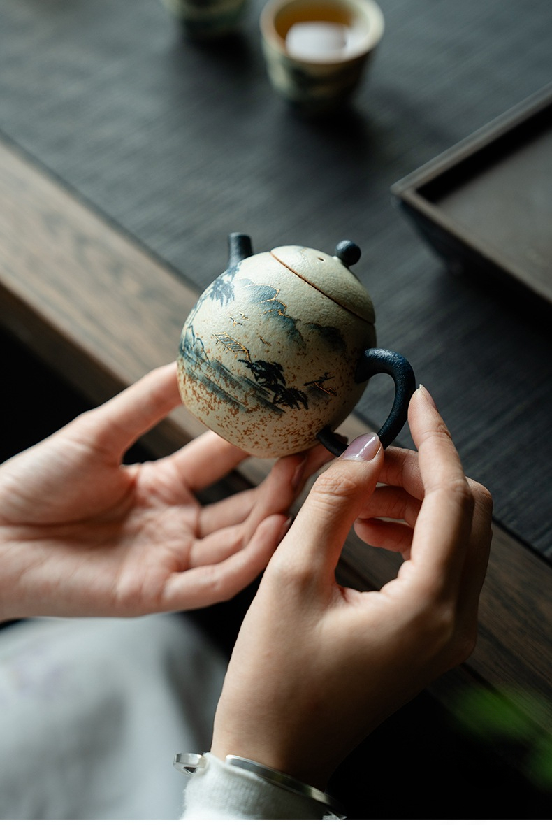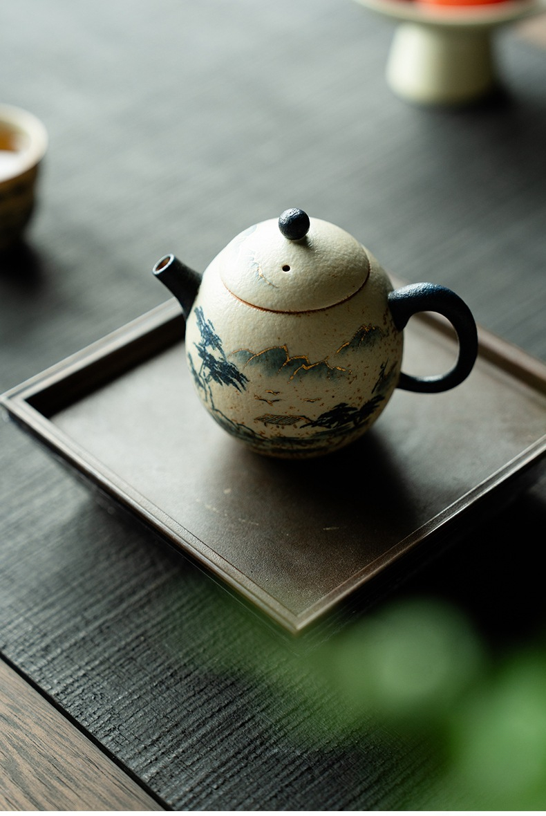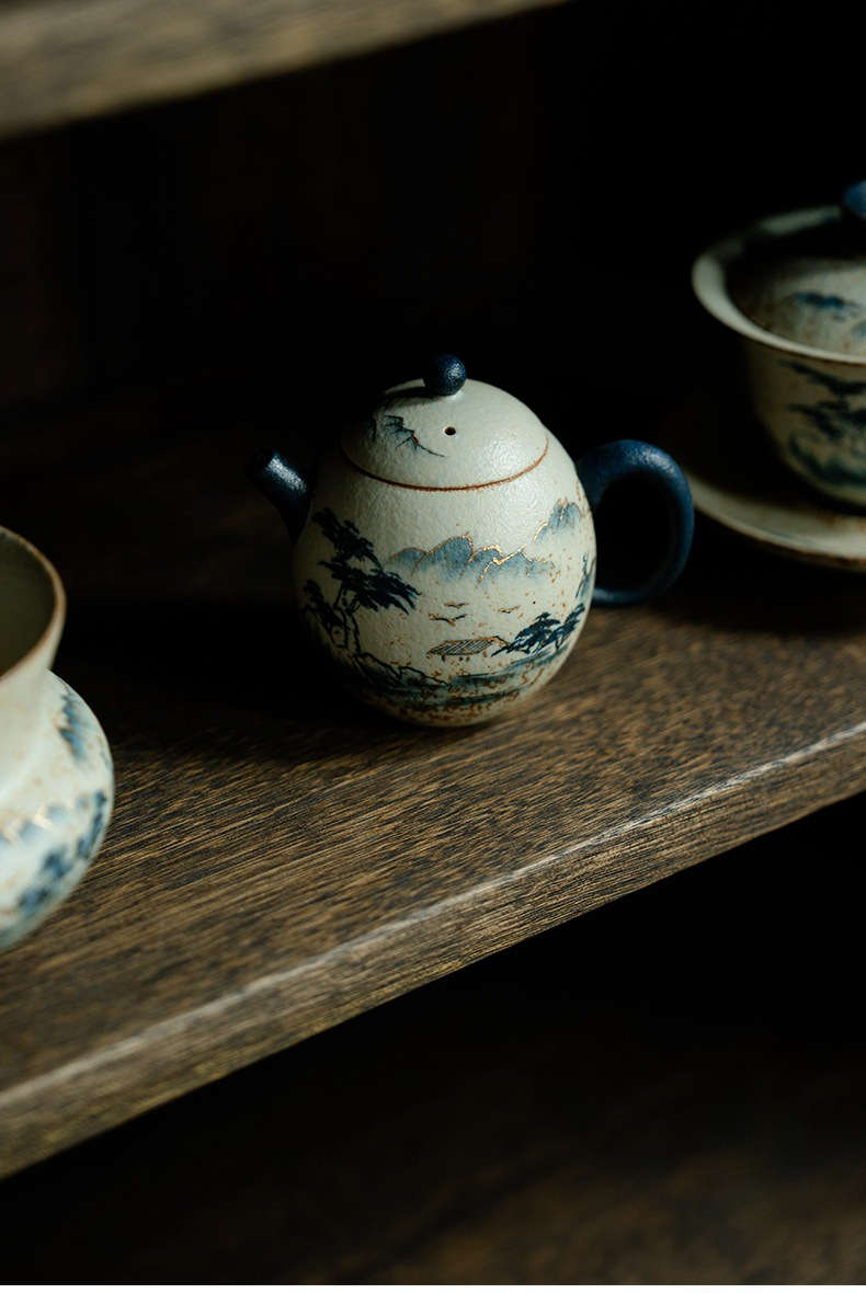 Blue and White Mountain Water Fire Stone Red Underglaze Color Teapot
