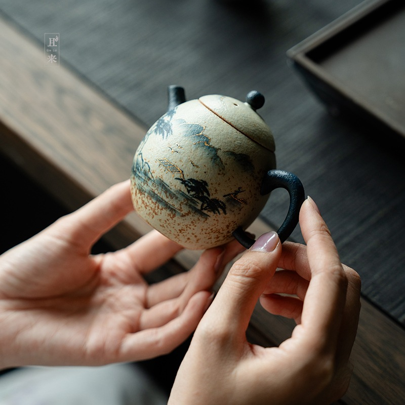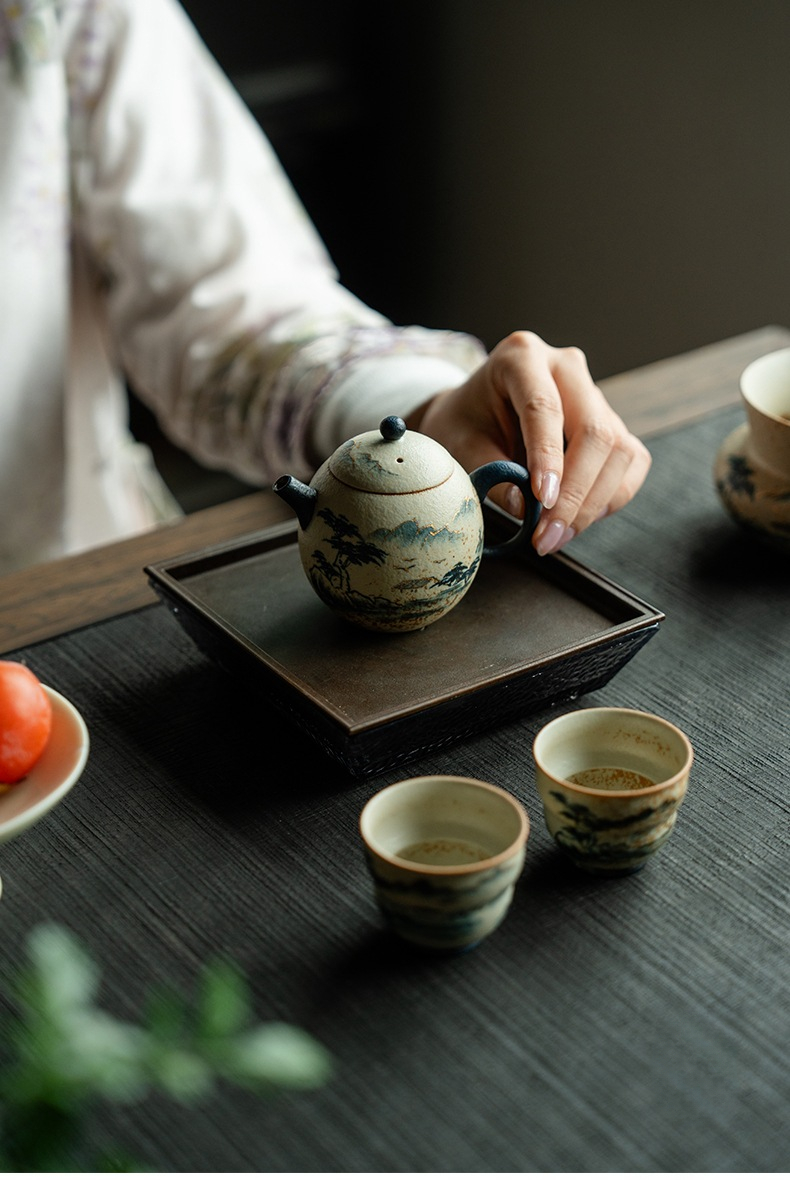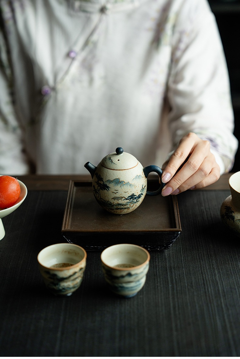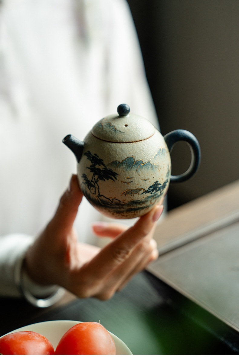 Blue and White Mountain Water Fire Stone Red Underglaze Color Teapot