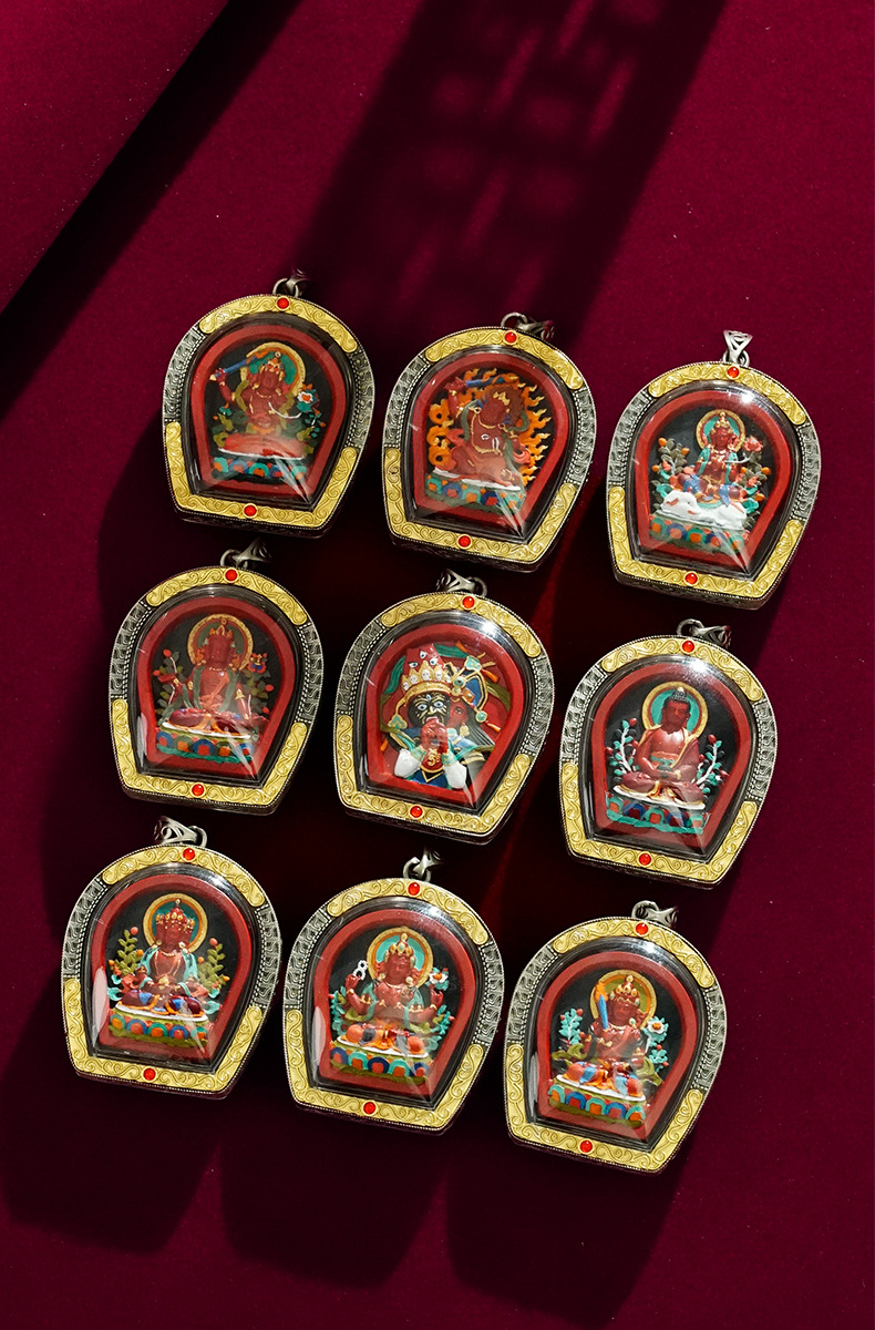 ■ Hand-Painted Thangka: Each pendant is adorned with meticulously hand-painted Thangka, a traditional Tibetan Buddhist art form depicting sacred deities and symbols. These intricate designs showcase vibrant colors that represent the divine.