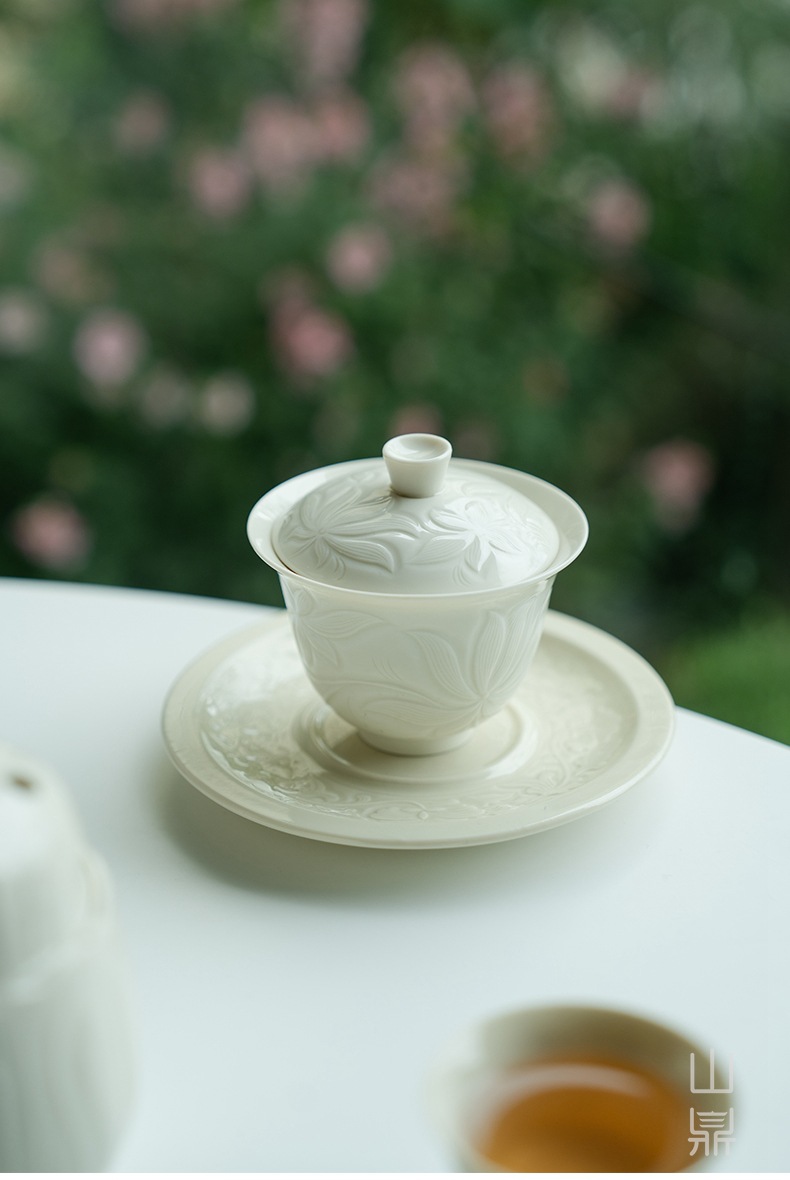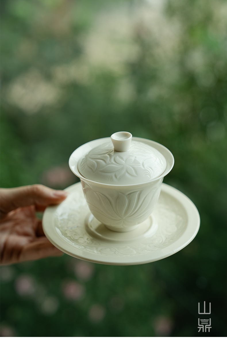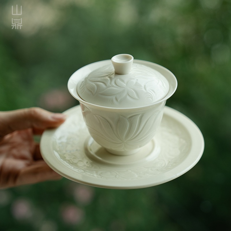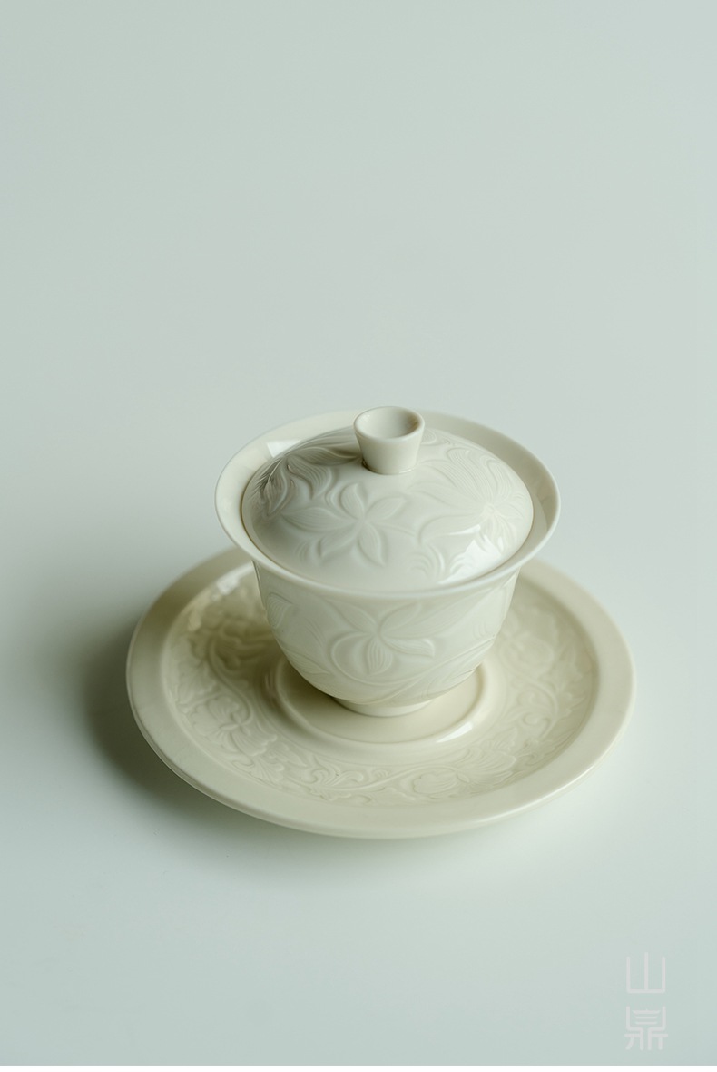 Dingyao Yellow Jade Orchid Three-Talent Gaiwan Tea Set