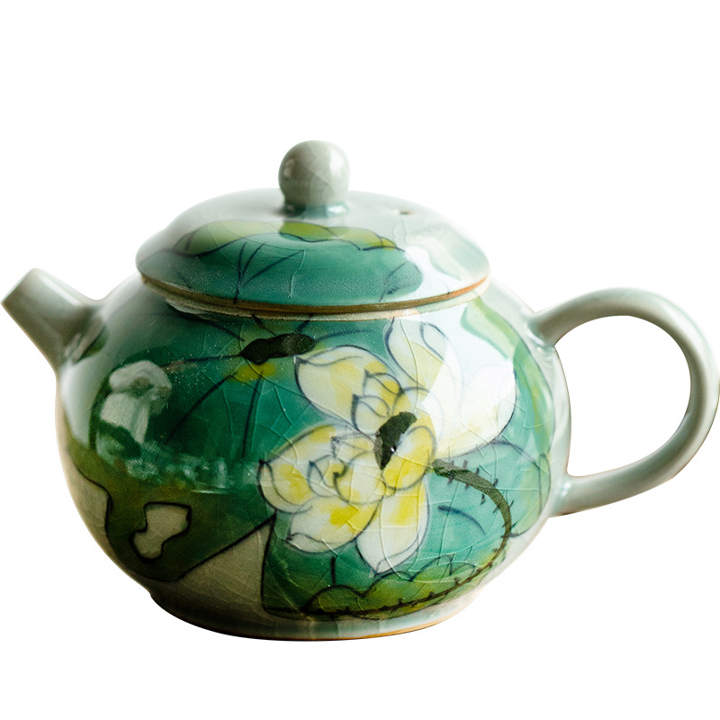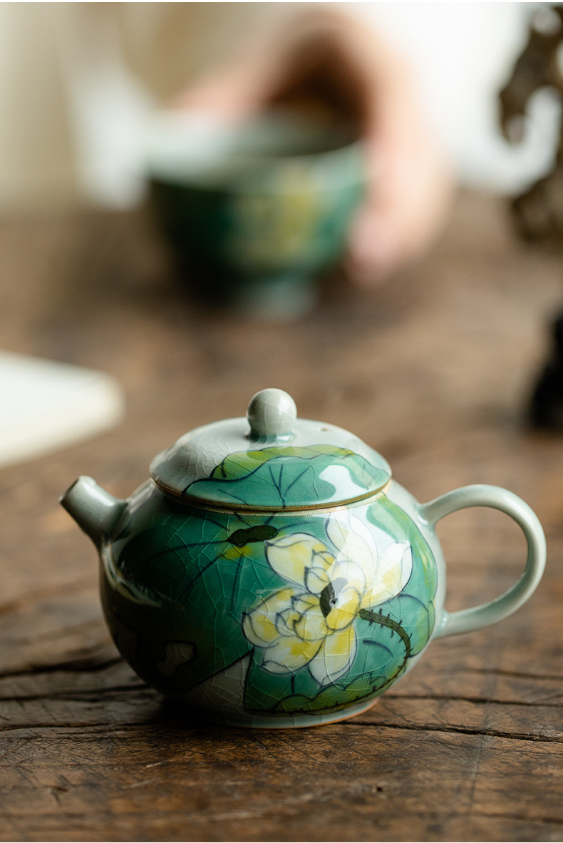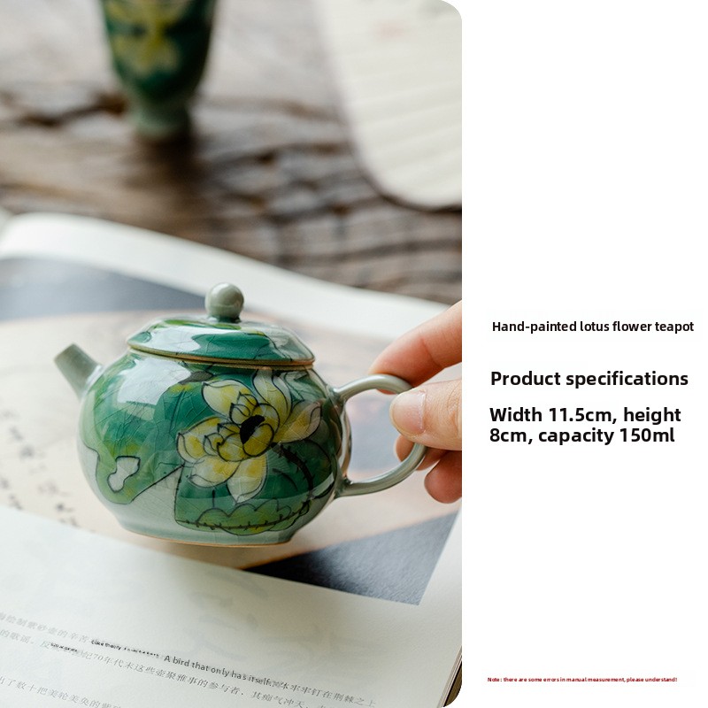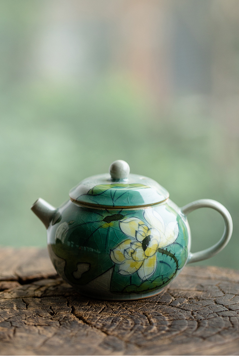 Green Hand-Painted Ice Lotus Teapot