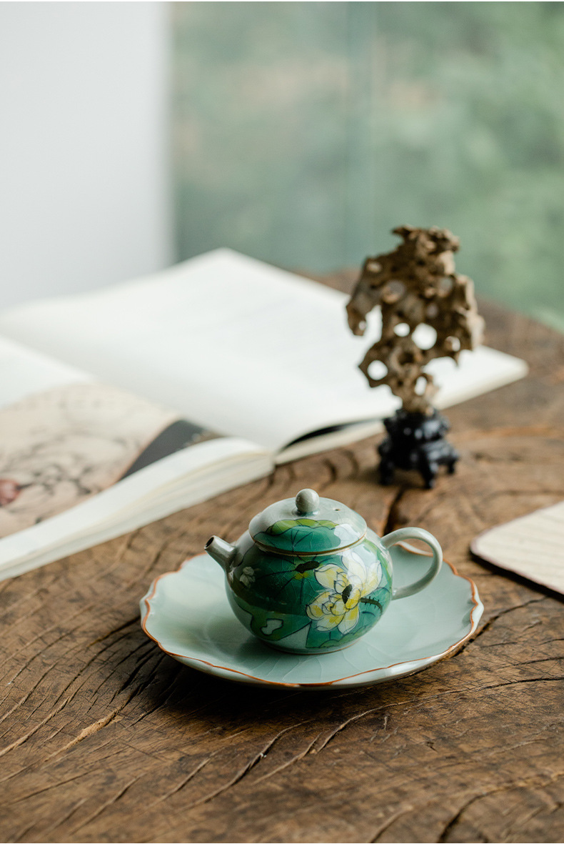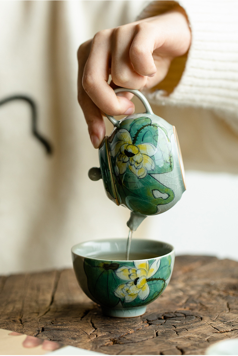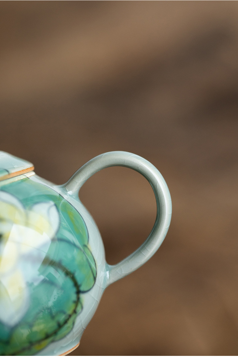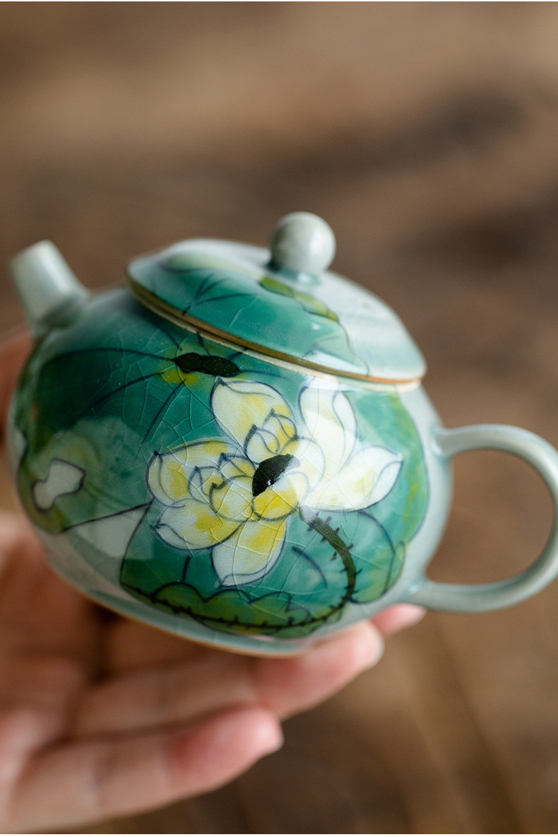 Green Hand-Painted Ice Lotus Teapot