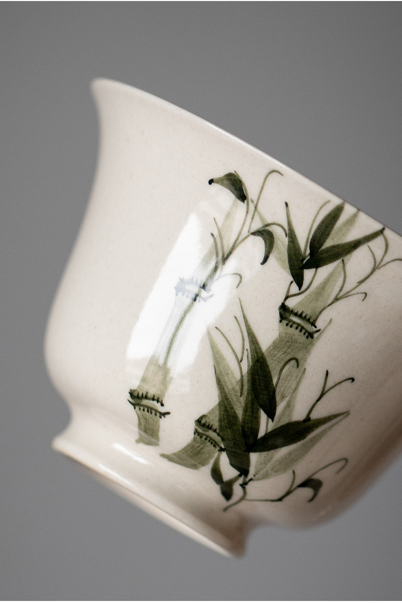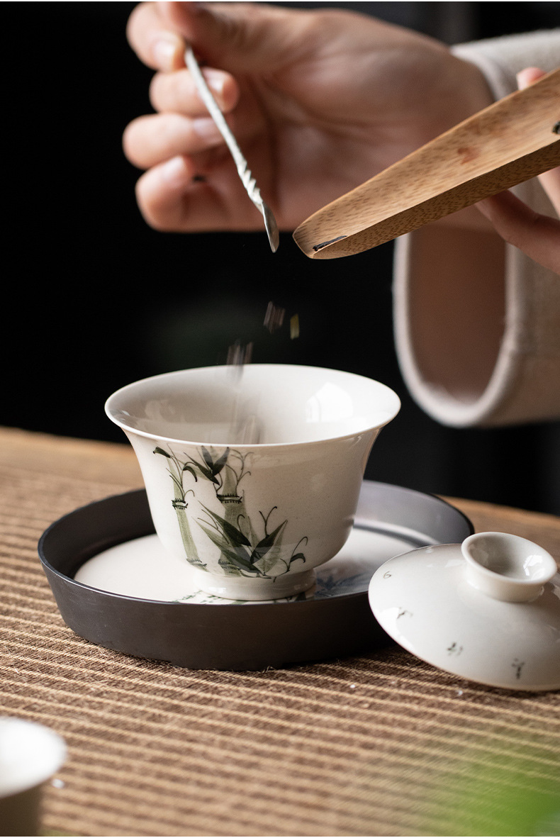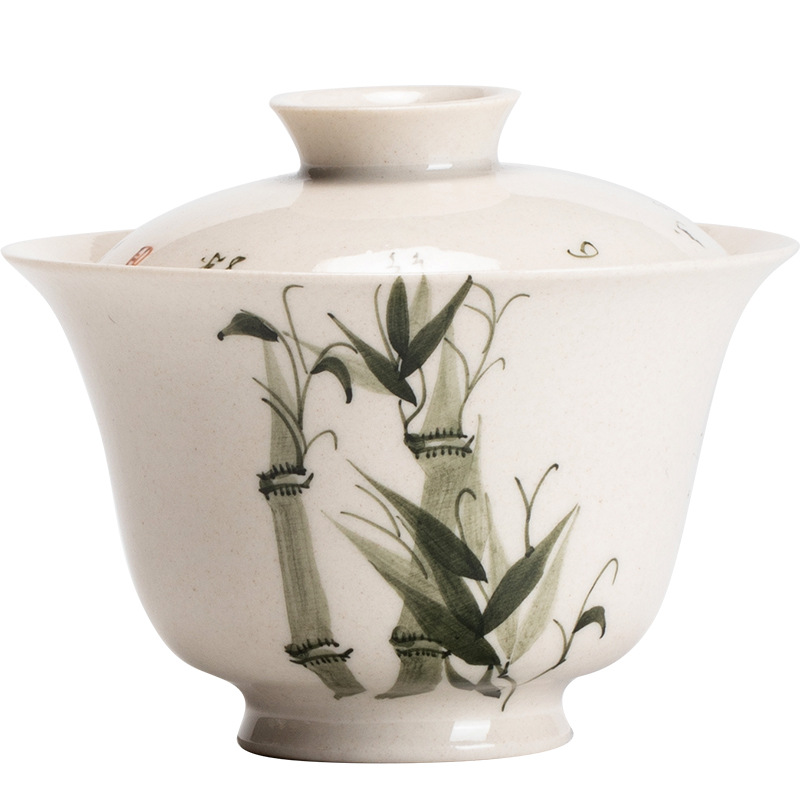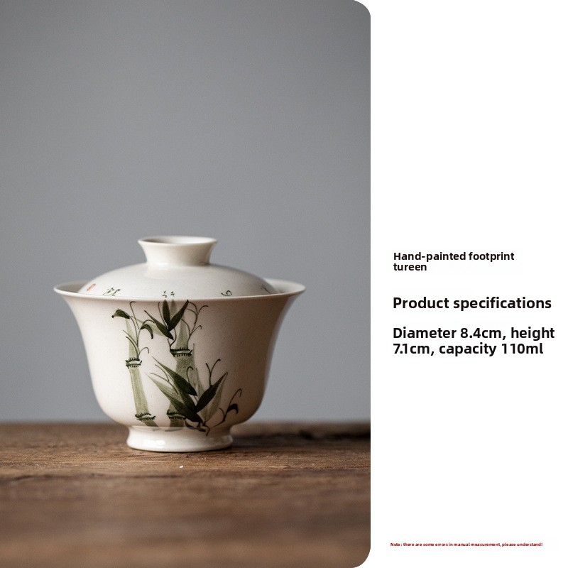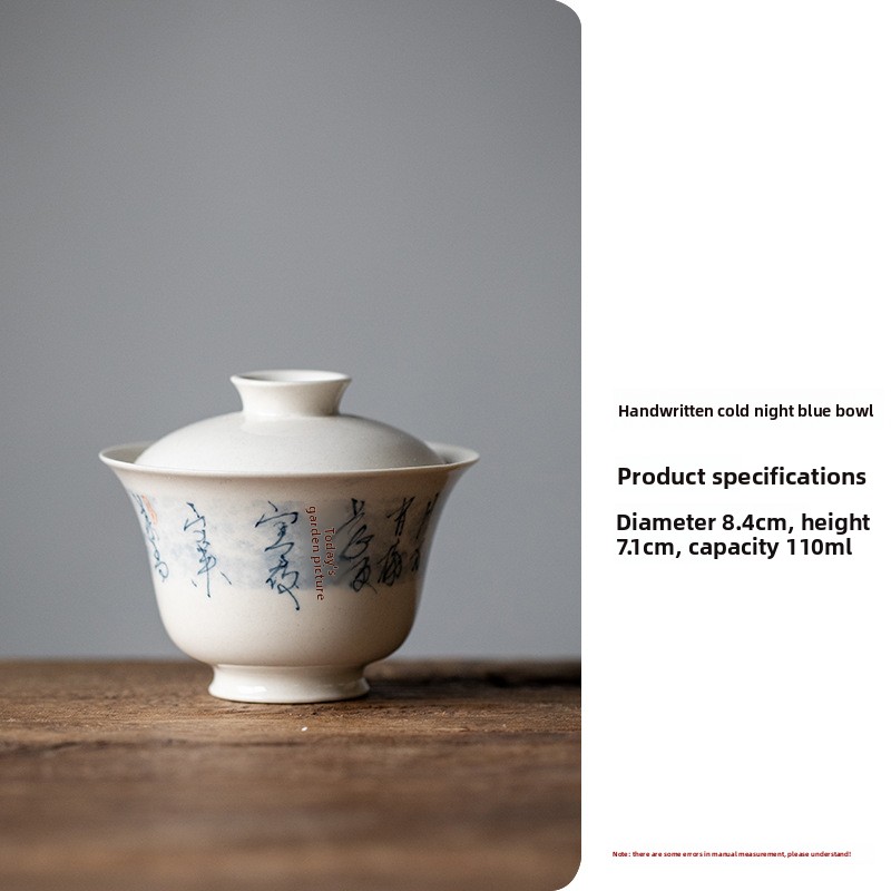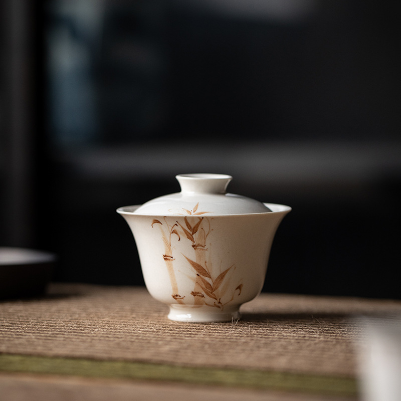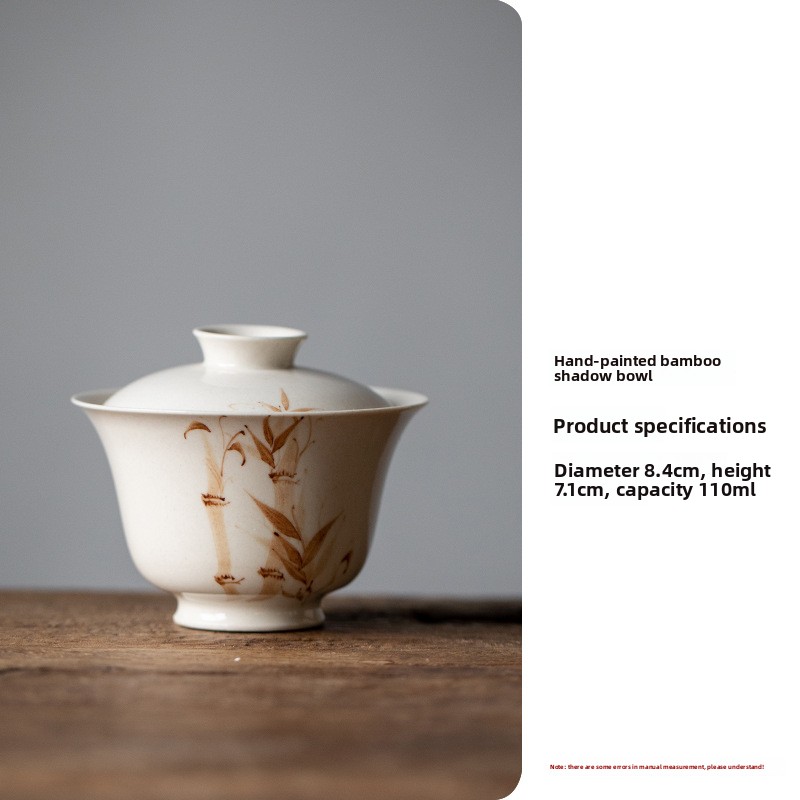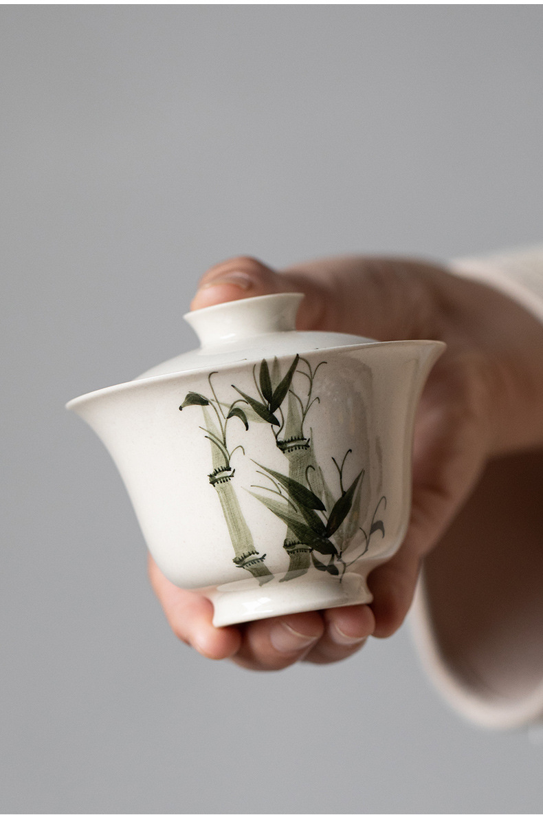 Hand-painted Poem Bamboo Underglaze Color Covered Bowl