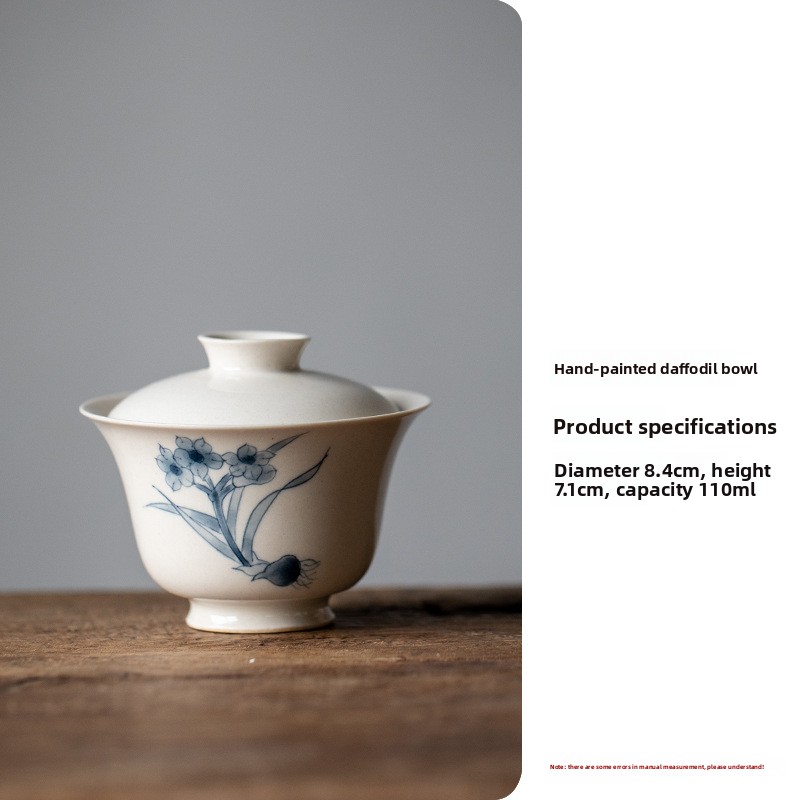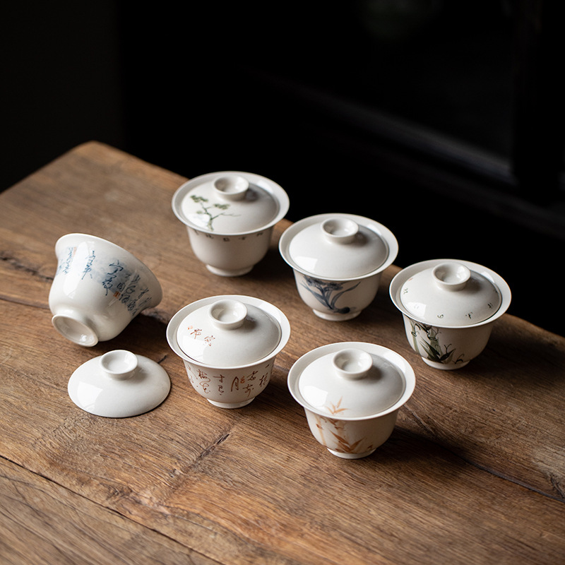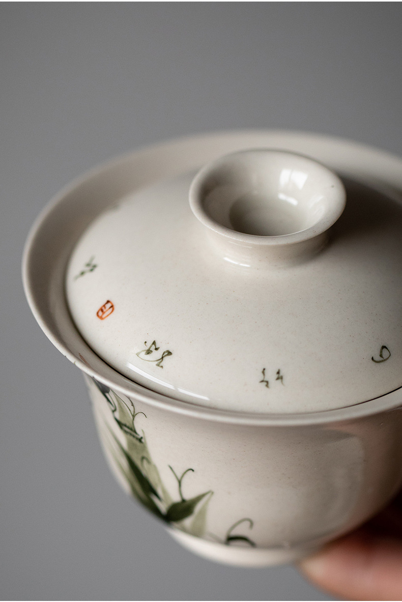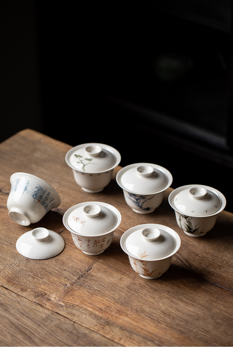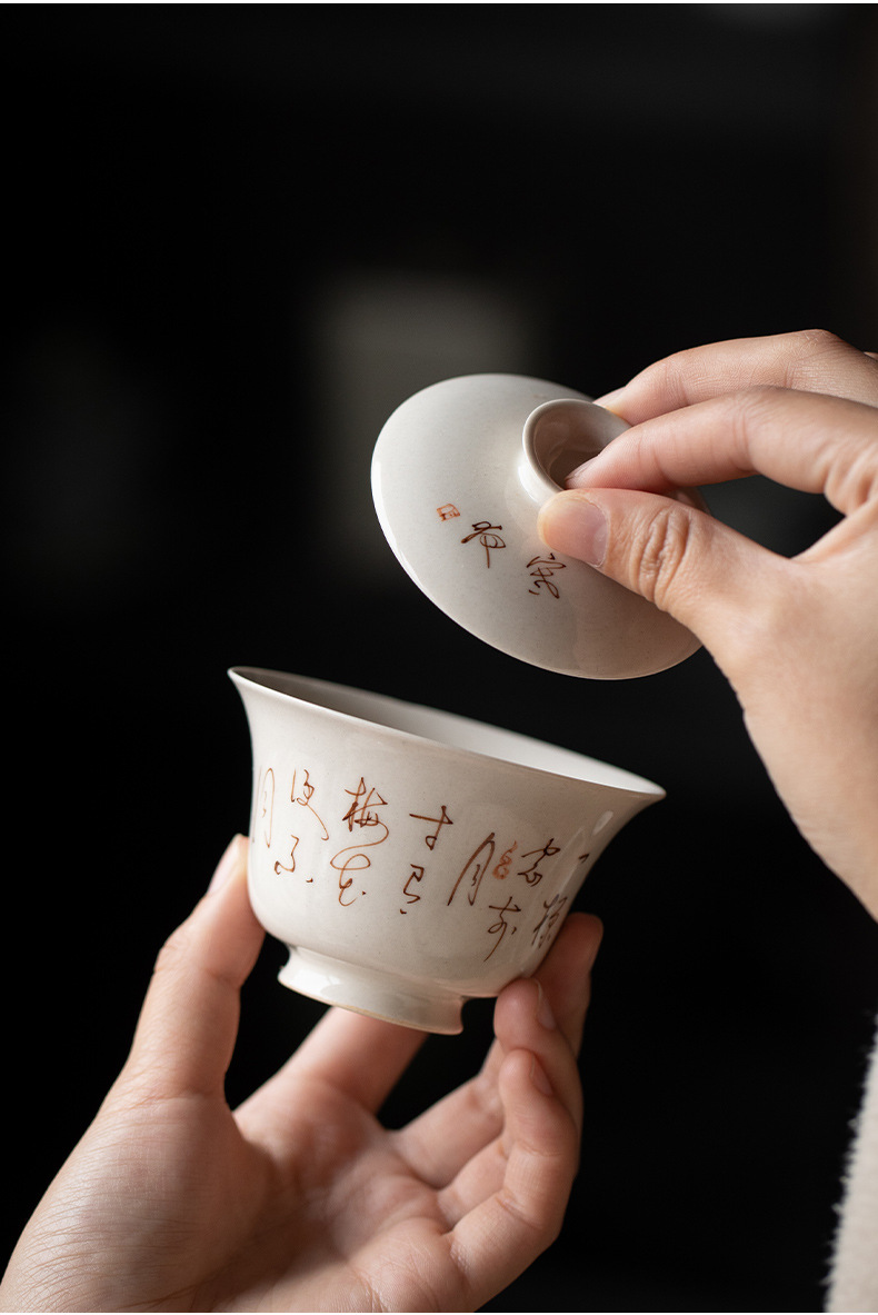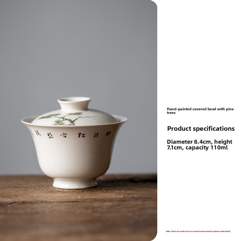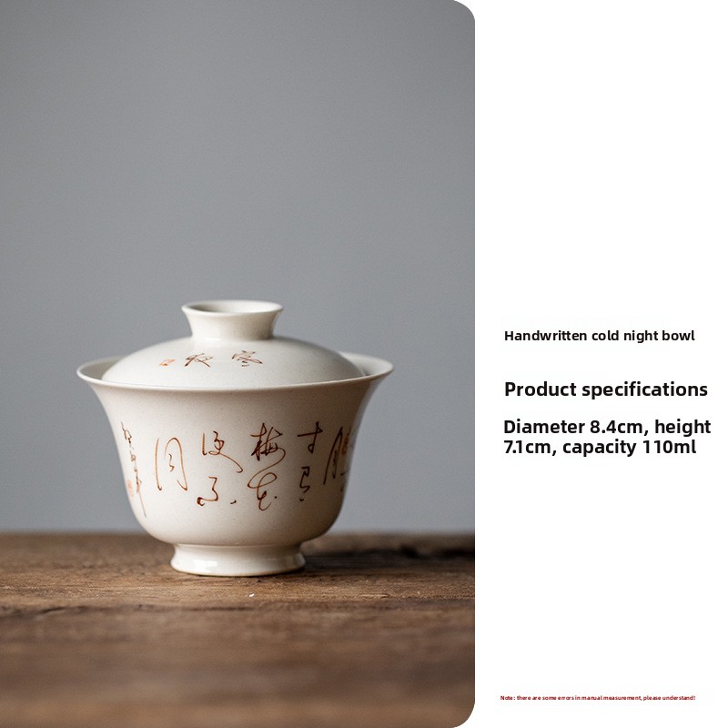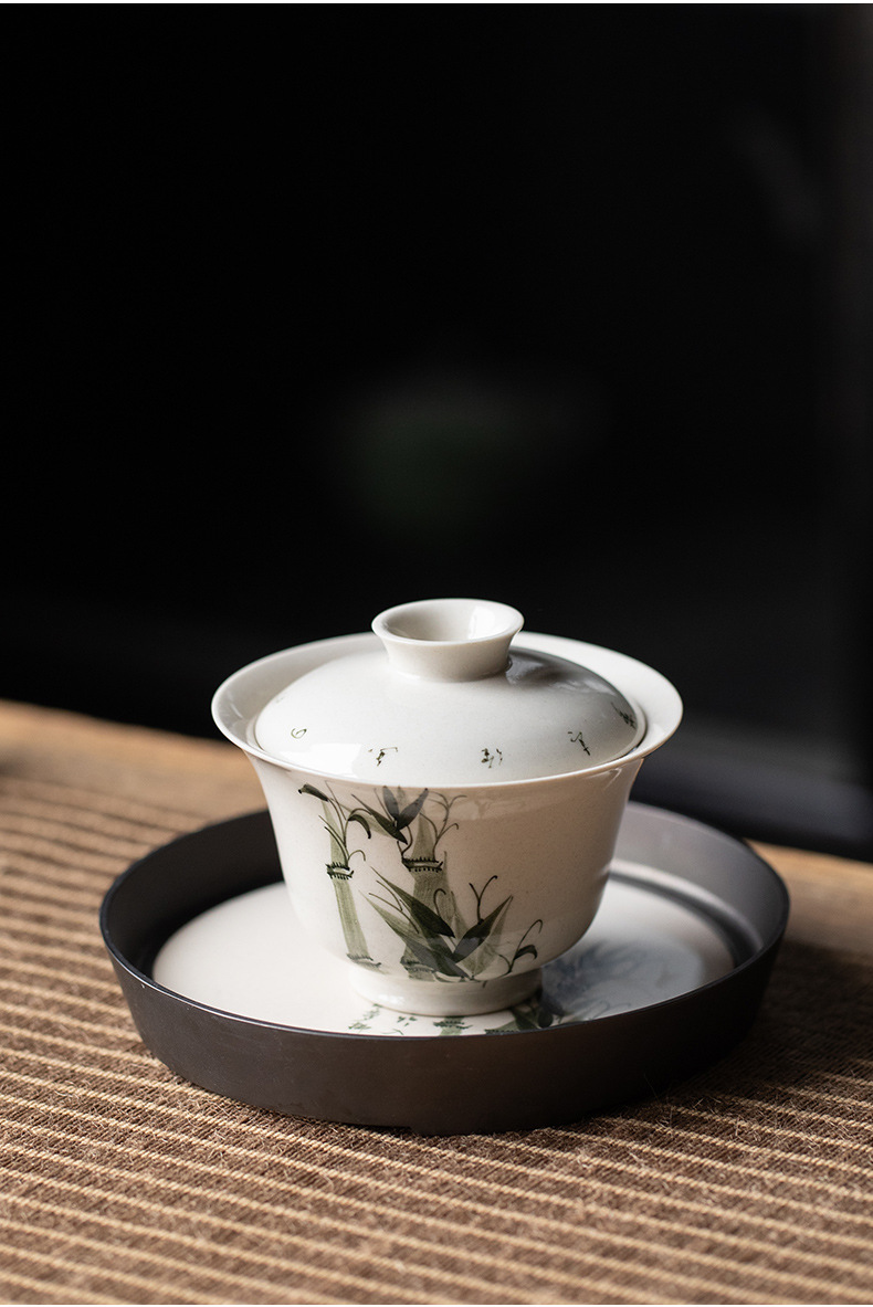 Hand-painted Poem Bamboo Underglaze Color Covered Bowl
