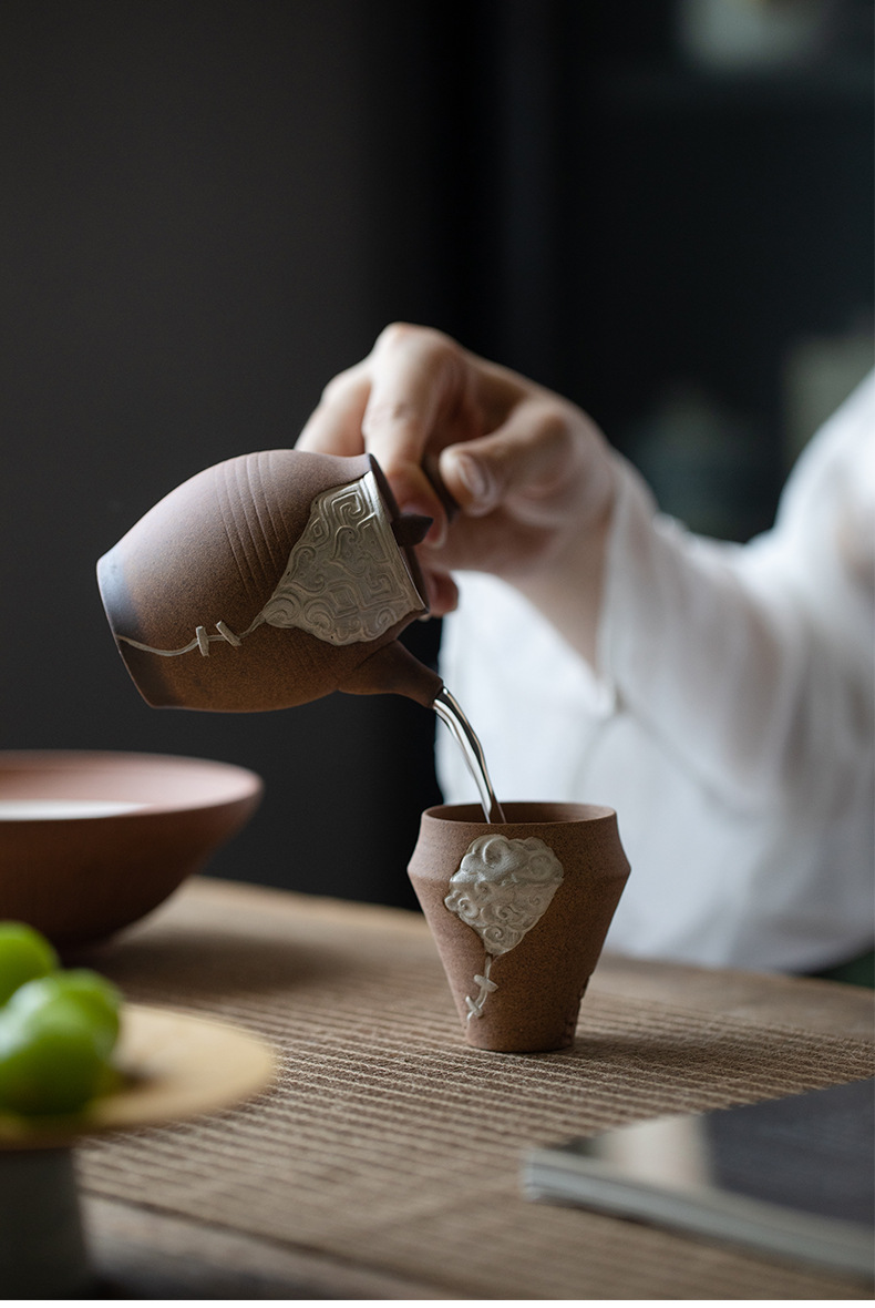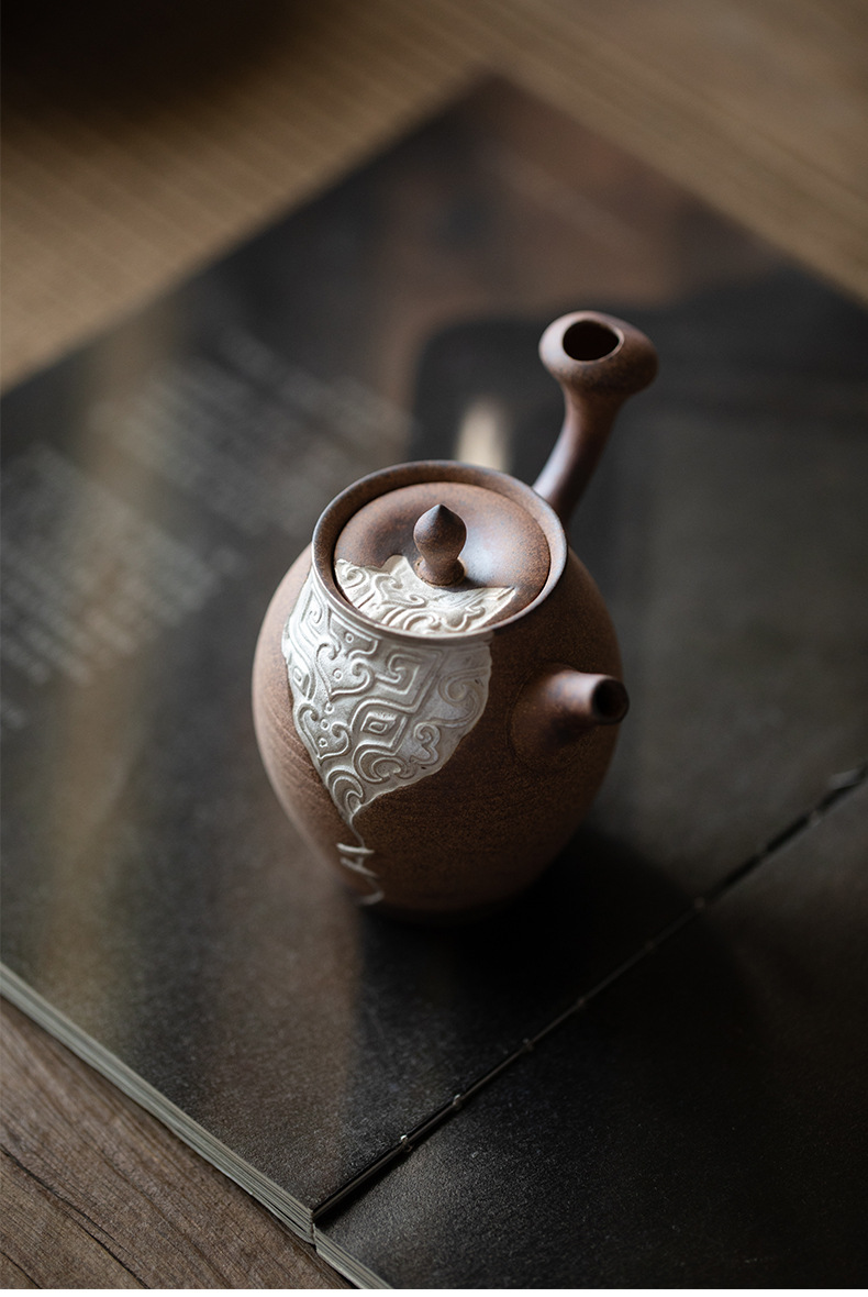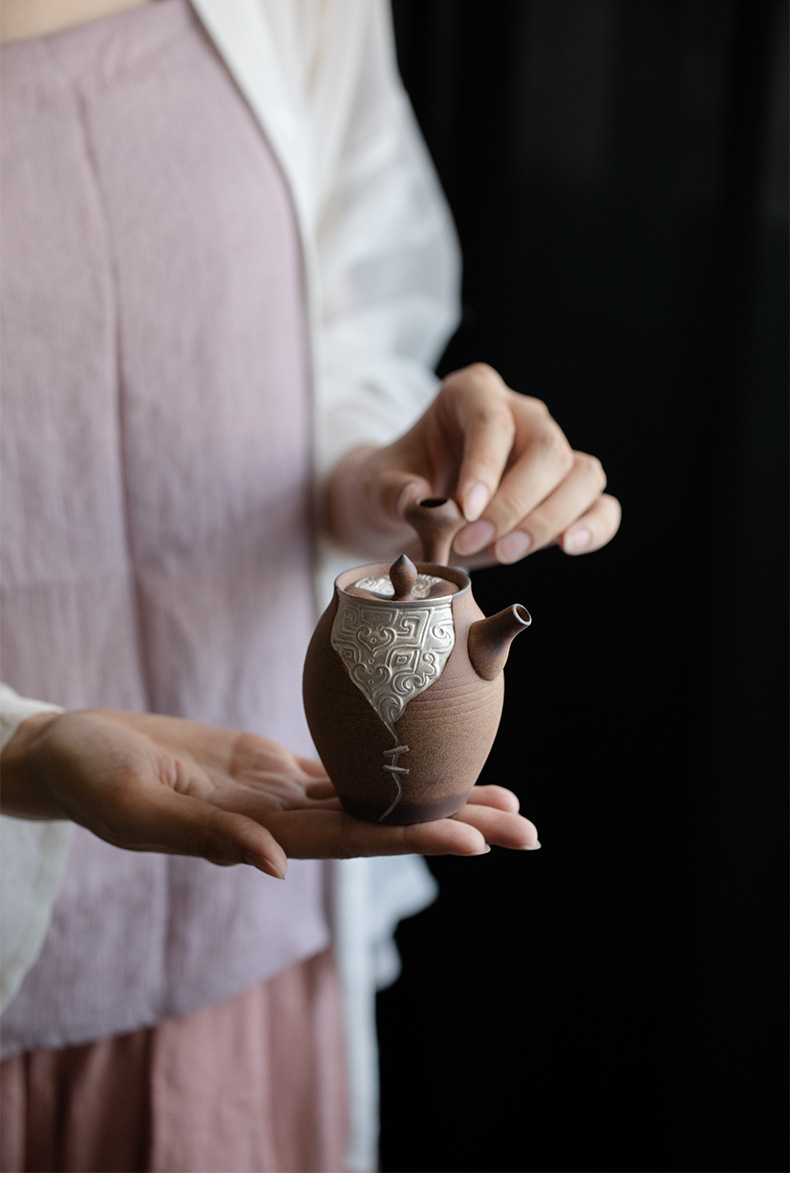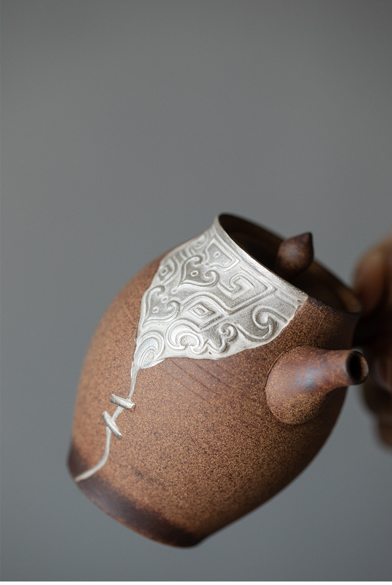 Old Rock Clay Relief Silver-Plated Side Handle Teapot