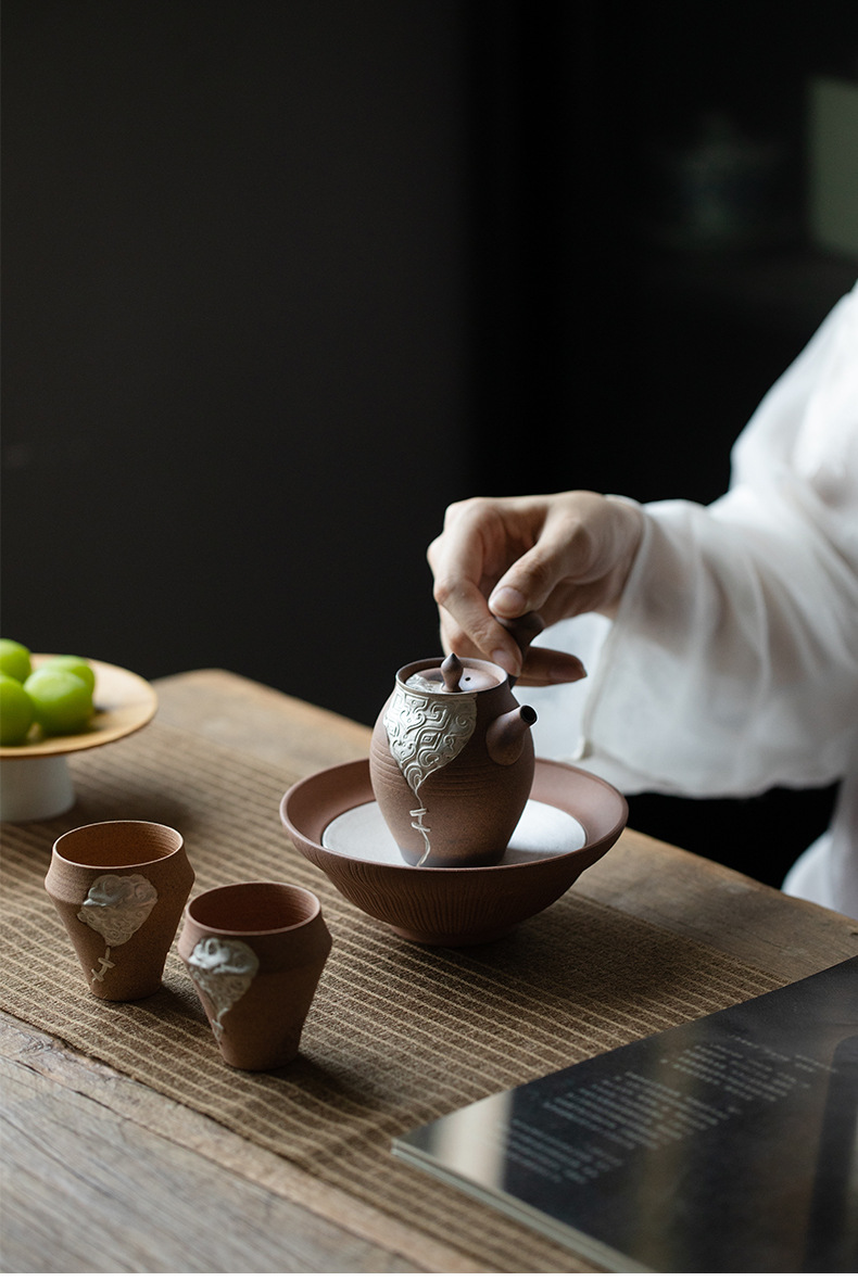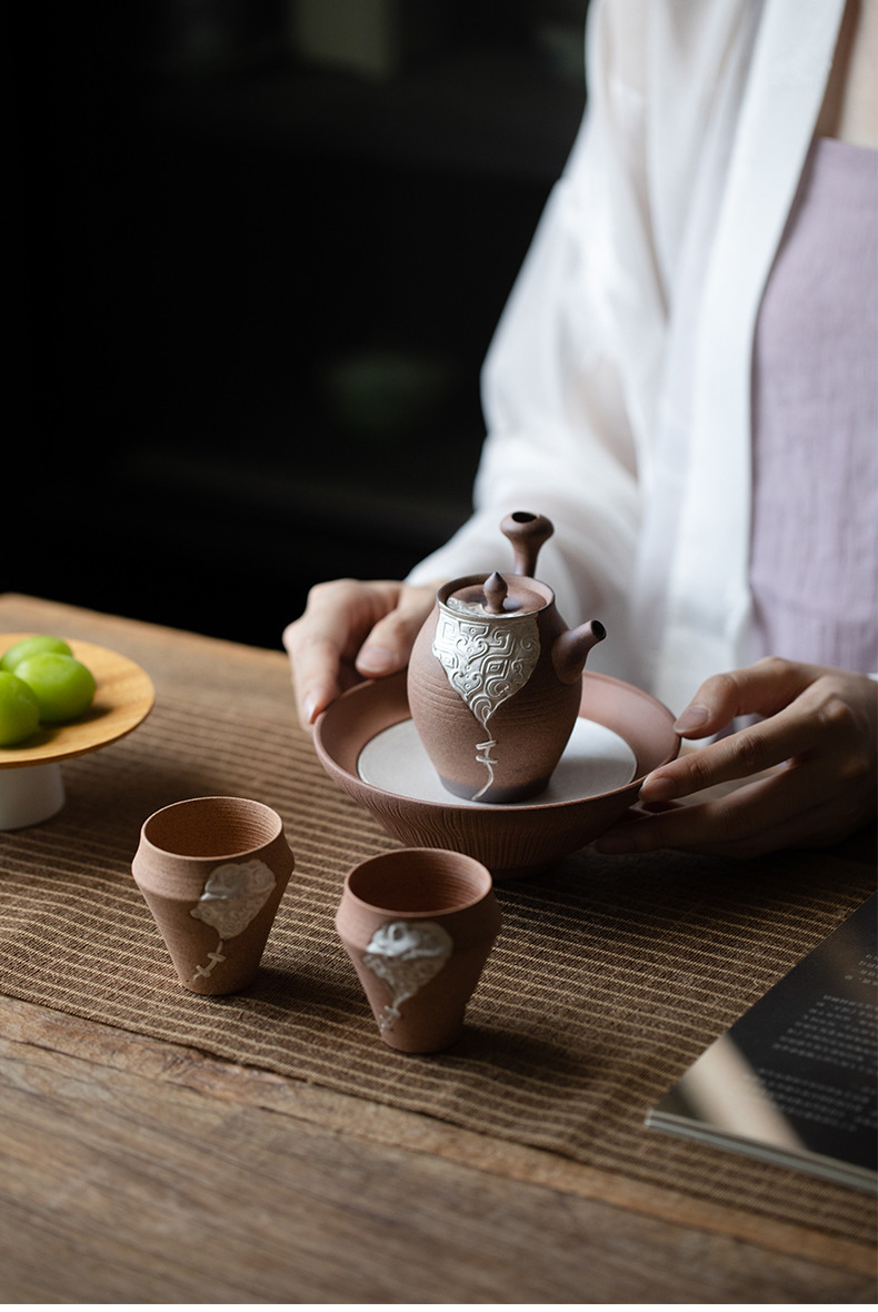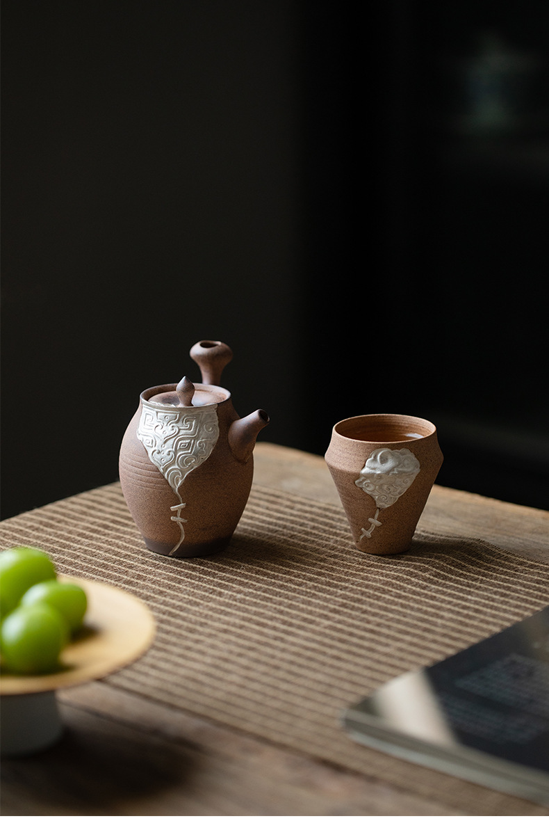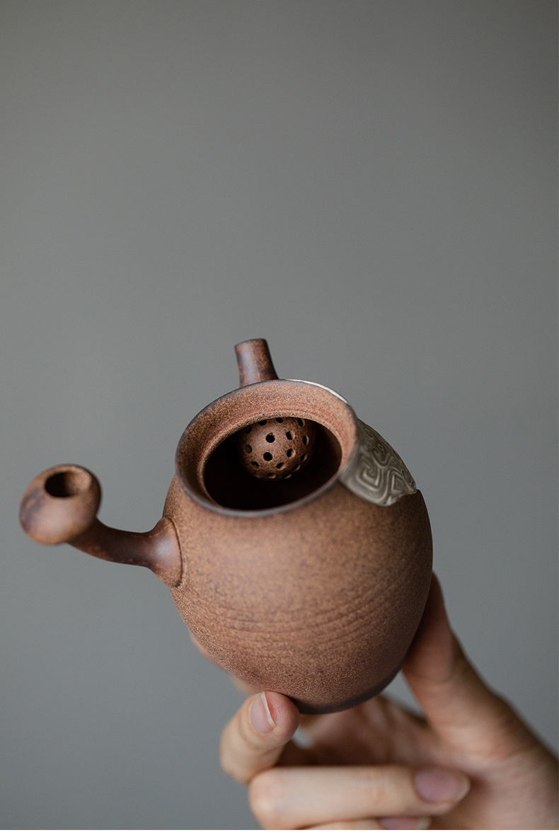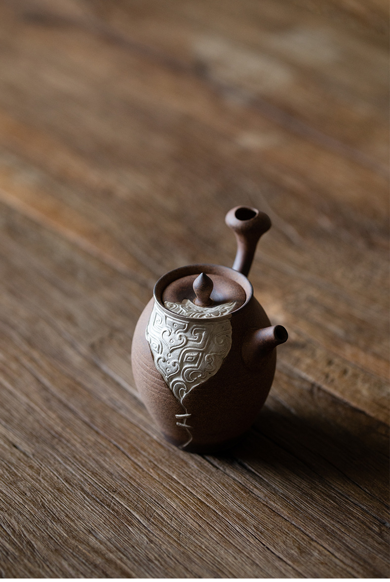 Old Rock Clay Relief Silver-Plated Side Handle Teapot