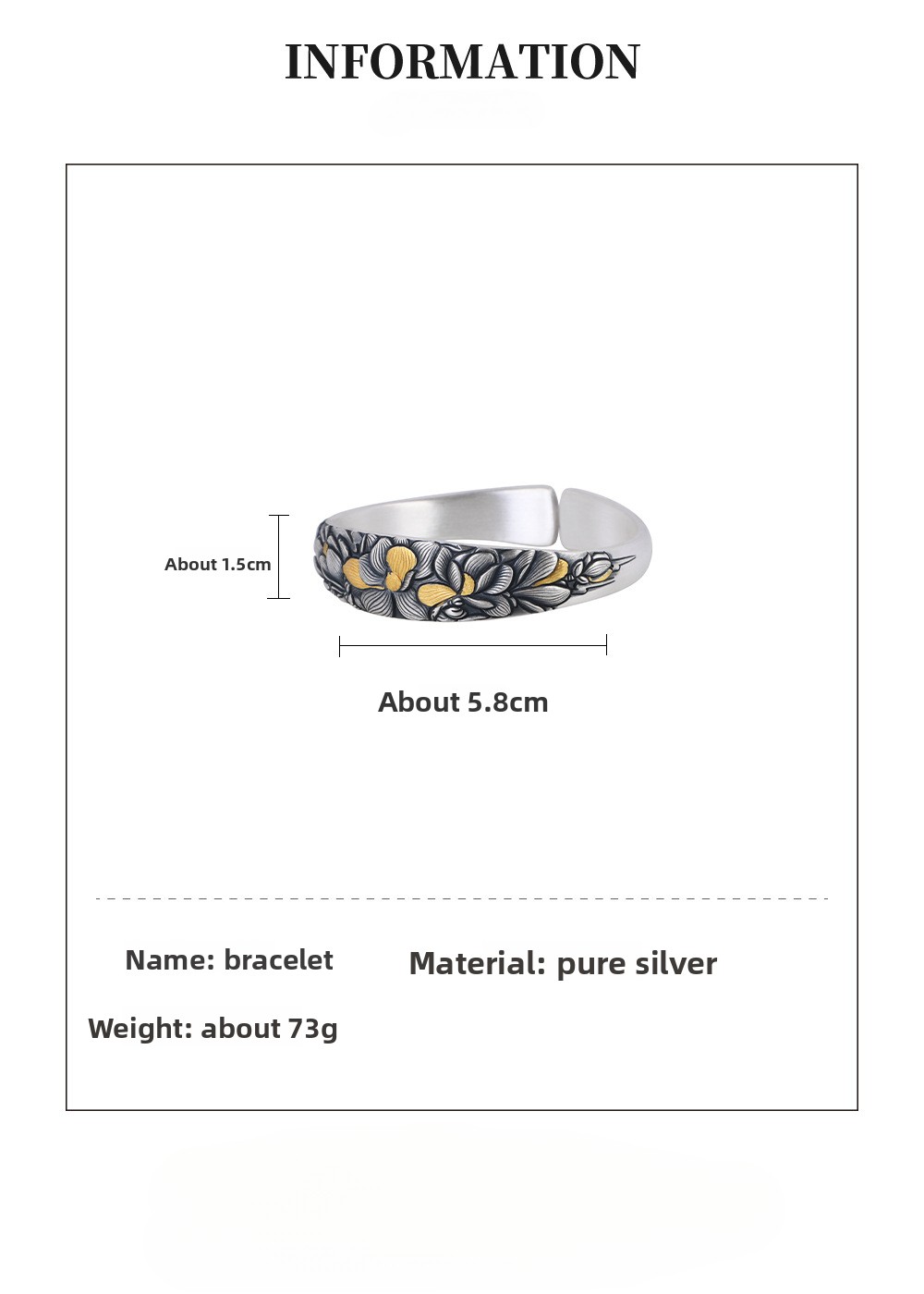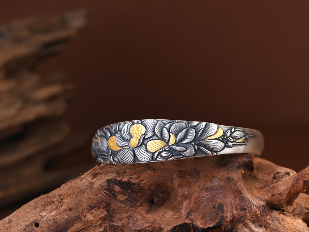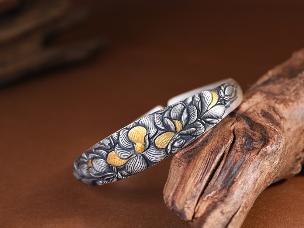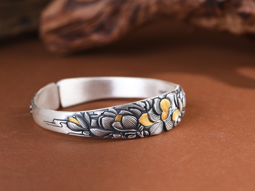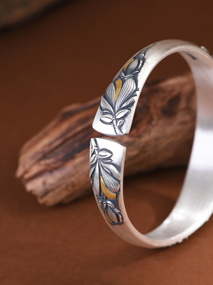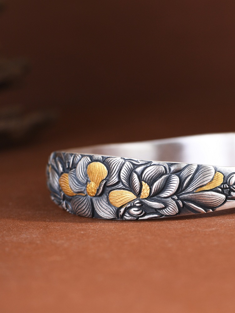 Pure Silver Simple and Elegant Peony Flower Bracelet
