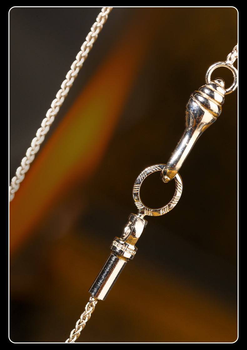 Tibetan Style Pure Silver and White Gold Dharma Horn Universal Necklace