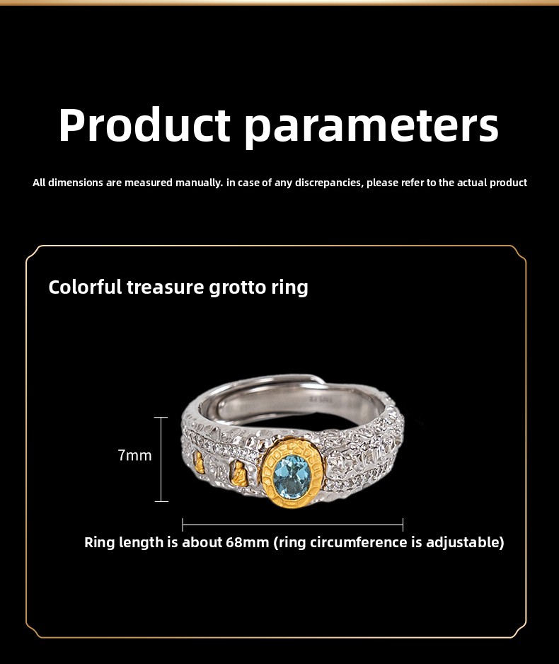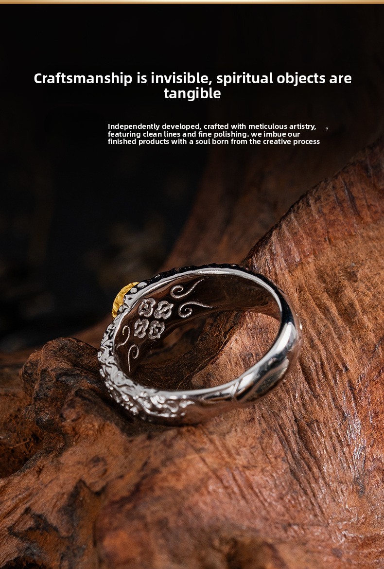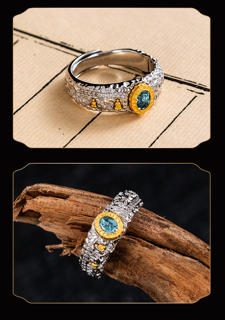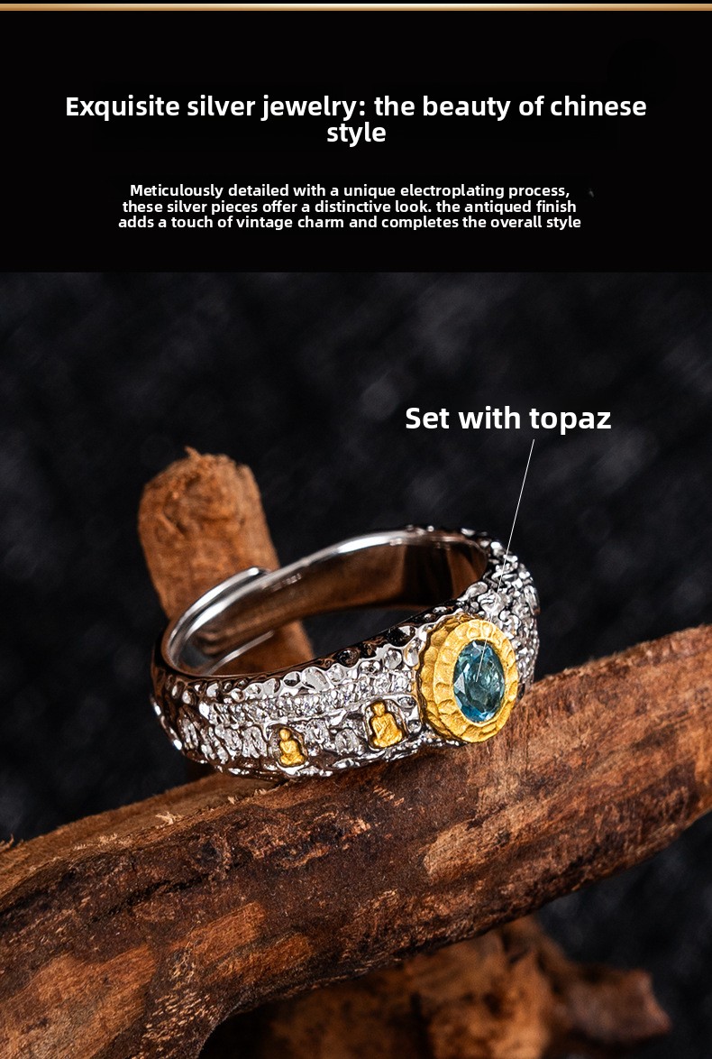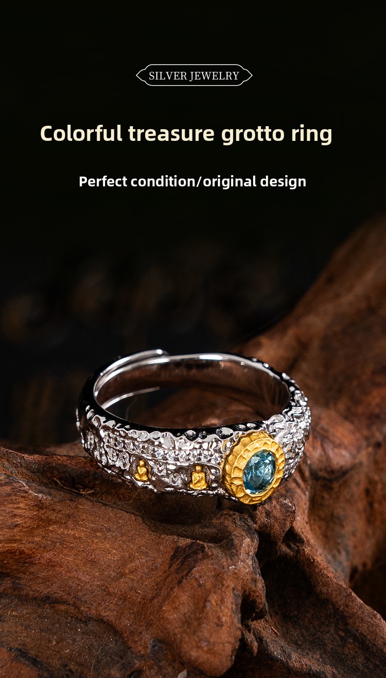 Tibetan Style Pure Silver Colorful Gem Buddha Cave Ring