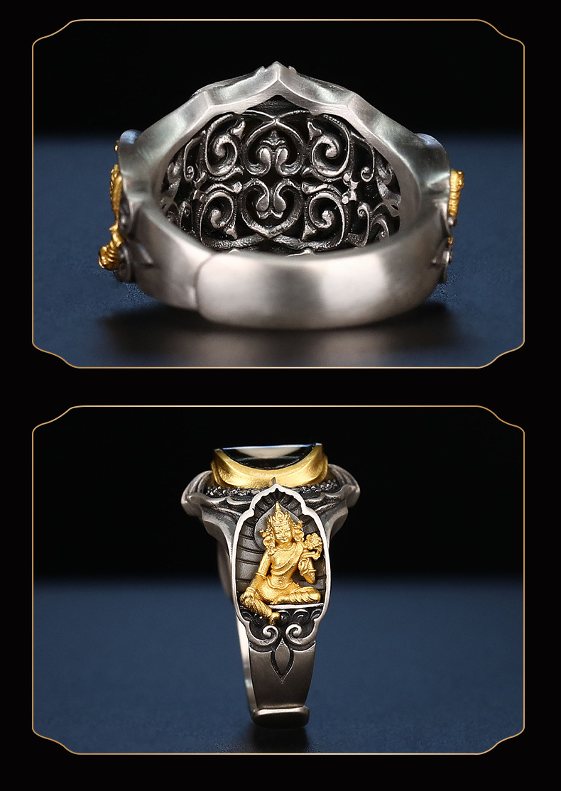 Tibetan Style Pure Silver Dzi Bead Green Tara Ring
