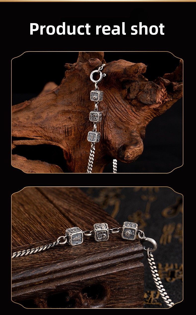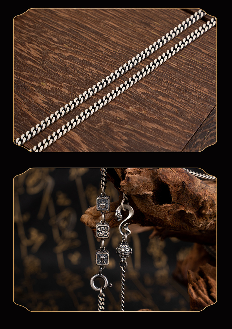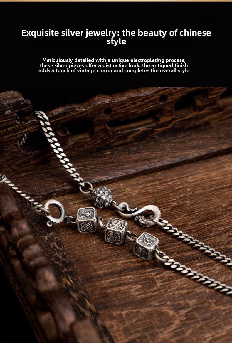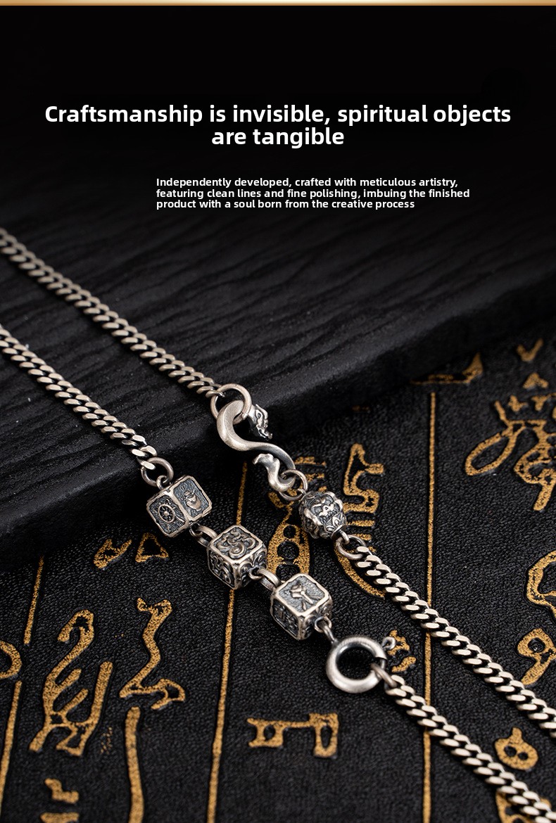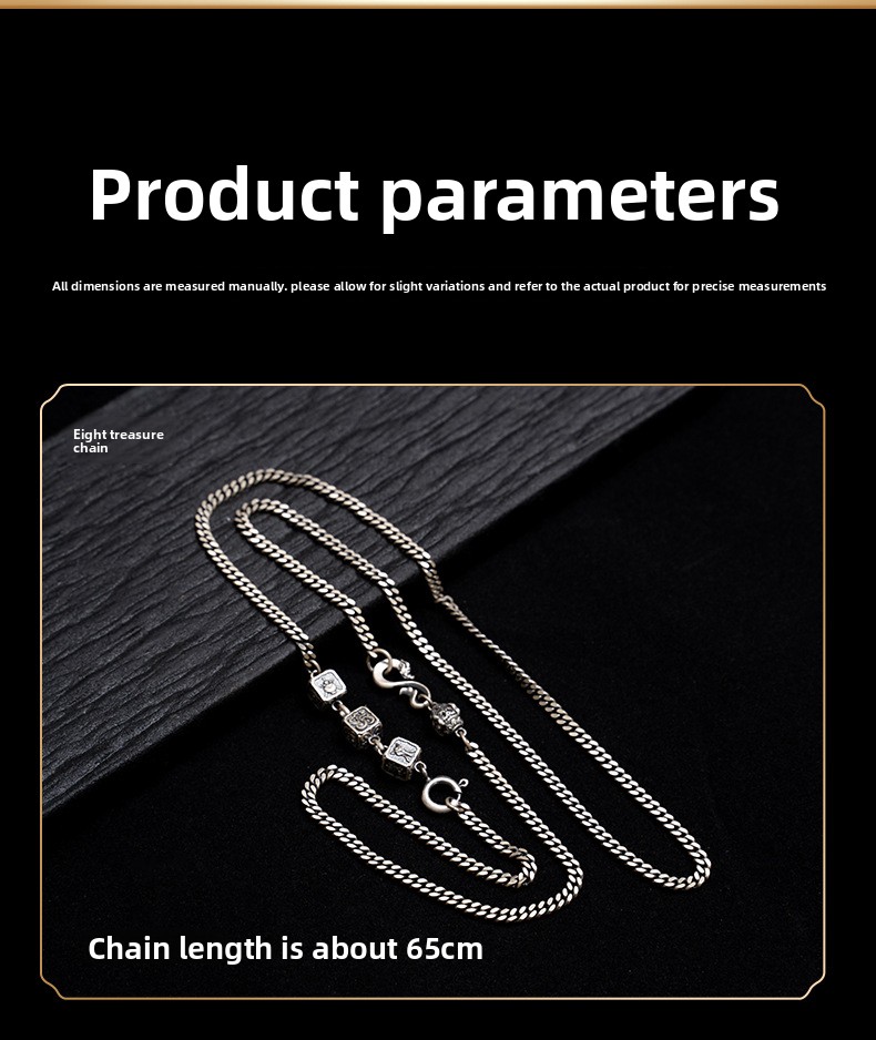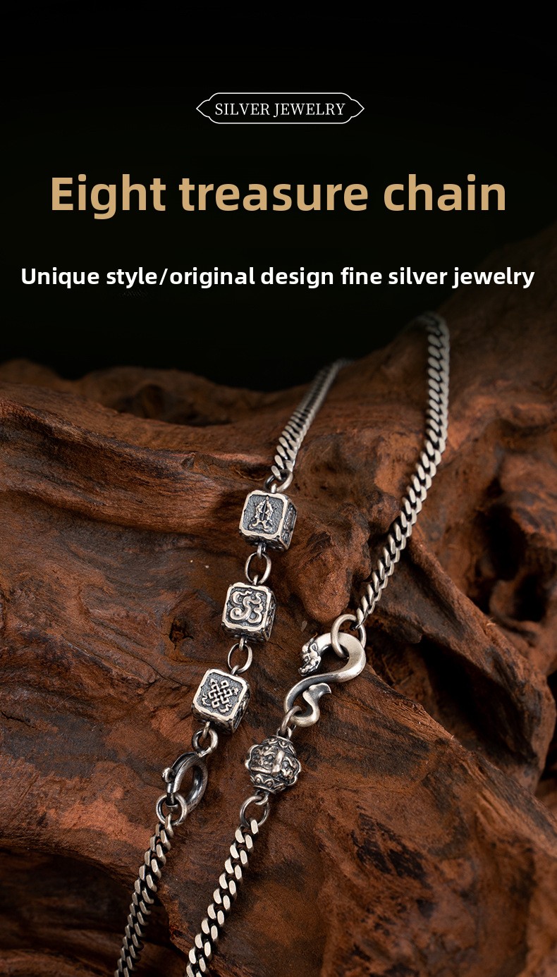 Tibetan Style Pure Silver Eight Treasures Fine Craft Necklace