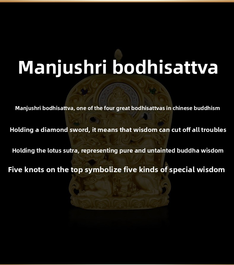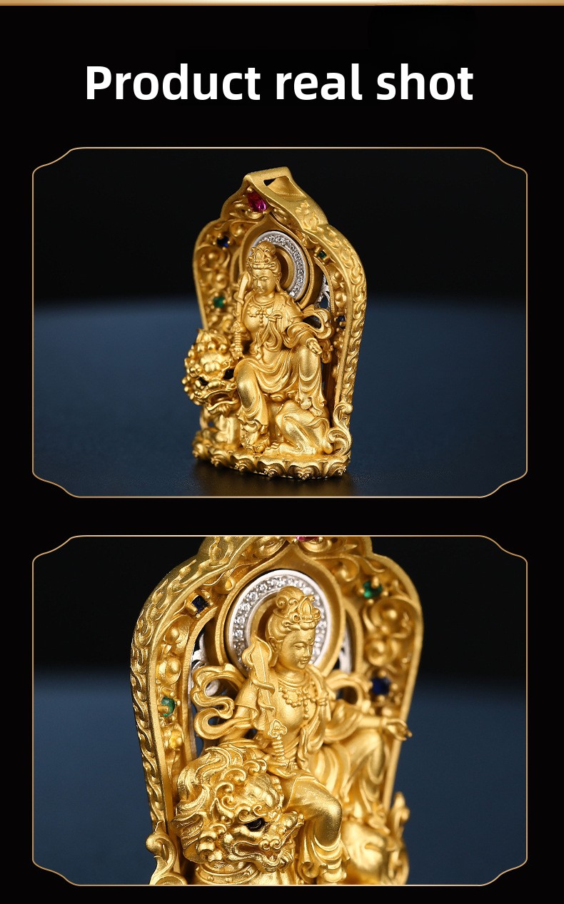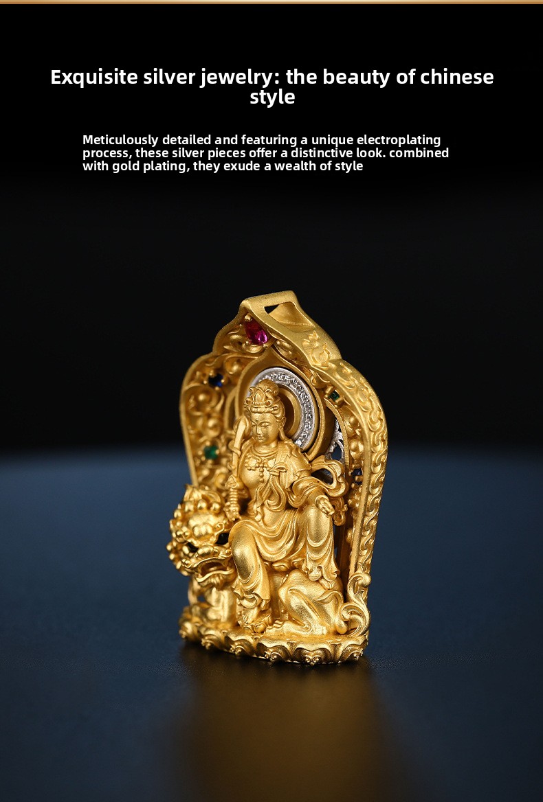 Tibetan Style Pure Silver Manjushri Bodhisattva Gold-Plated Silver Pendant