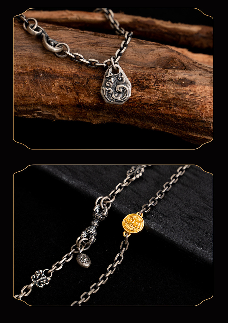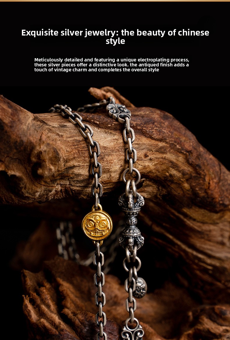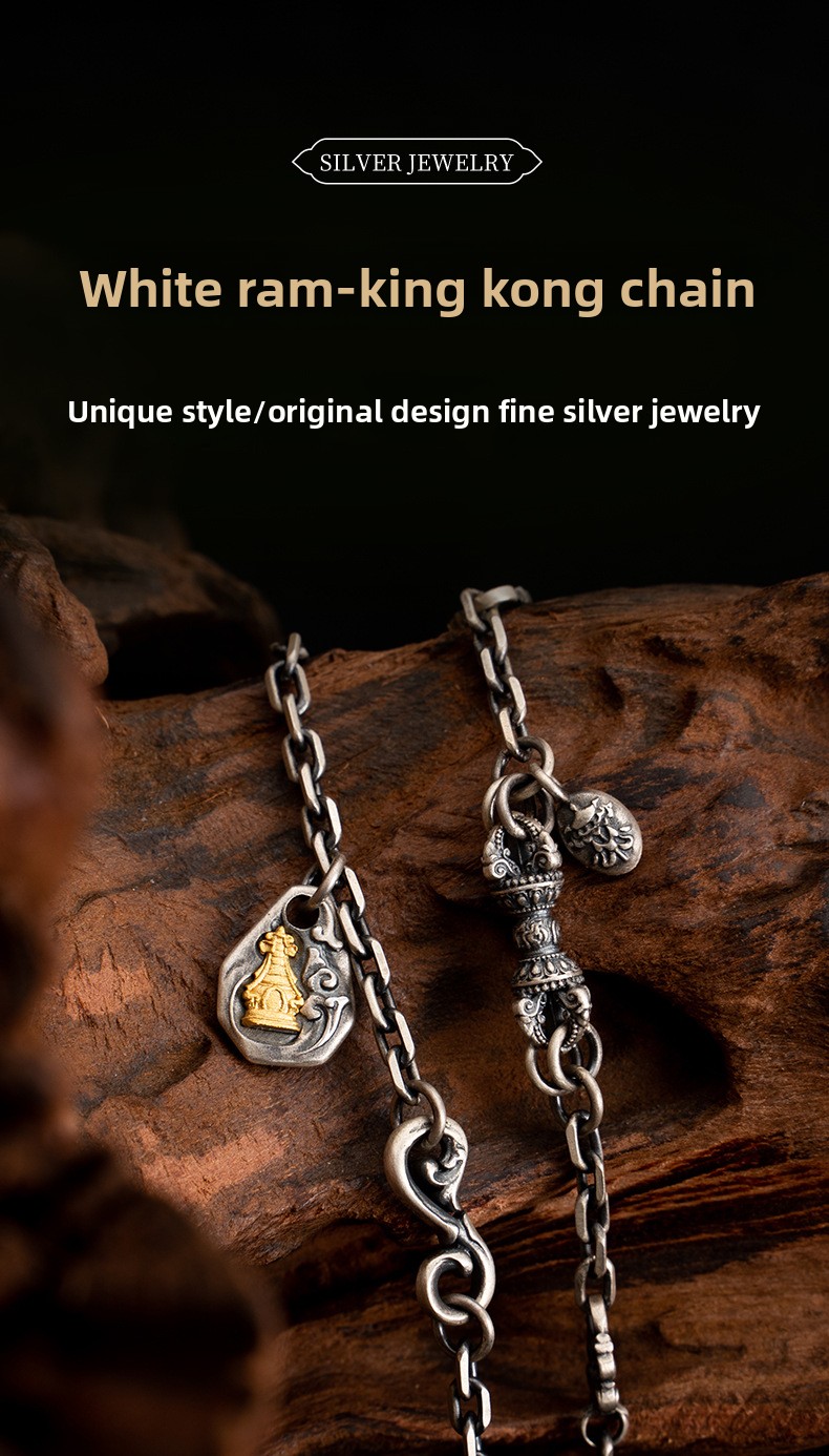 Tibetan Style Pure Silver White Zakiram Vajra Necklace