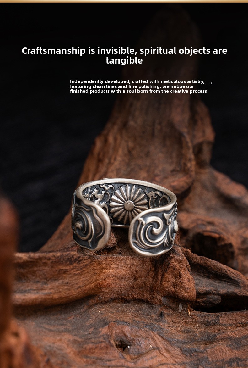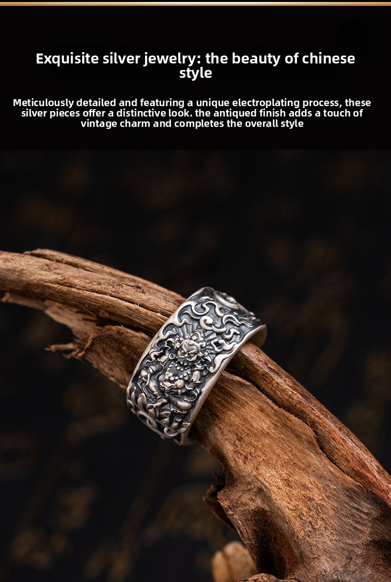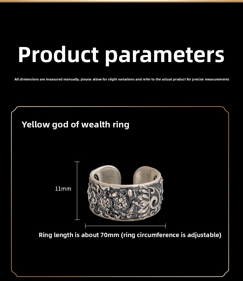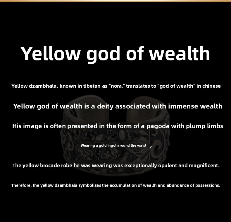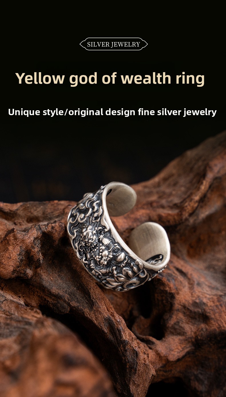 Tibetan Style Pure Silver Yellow God of Wealth Ring
