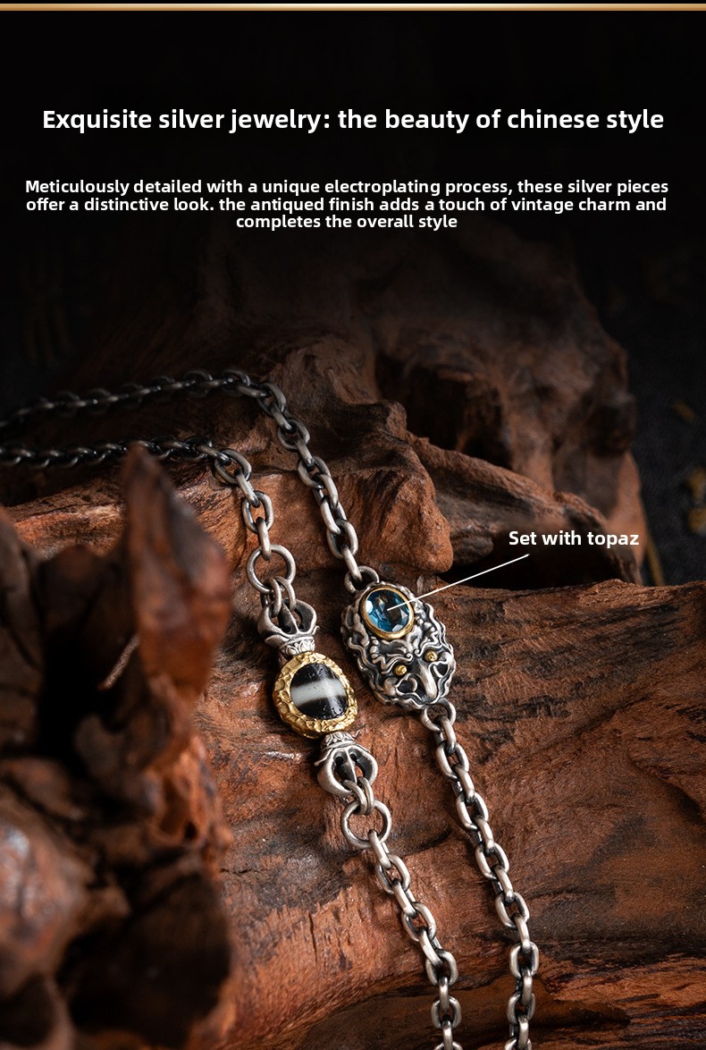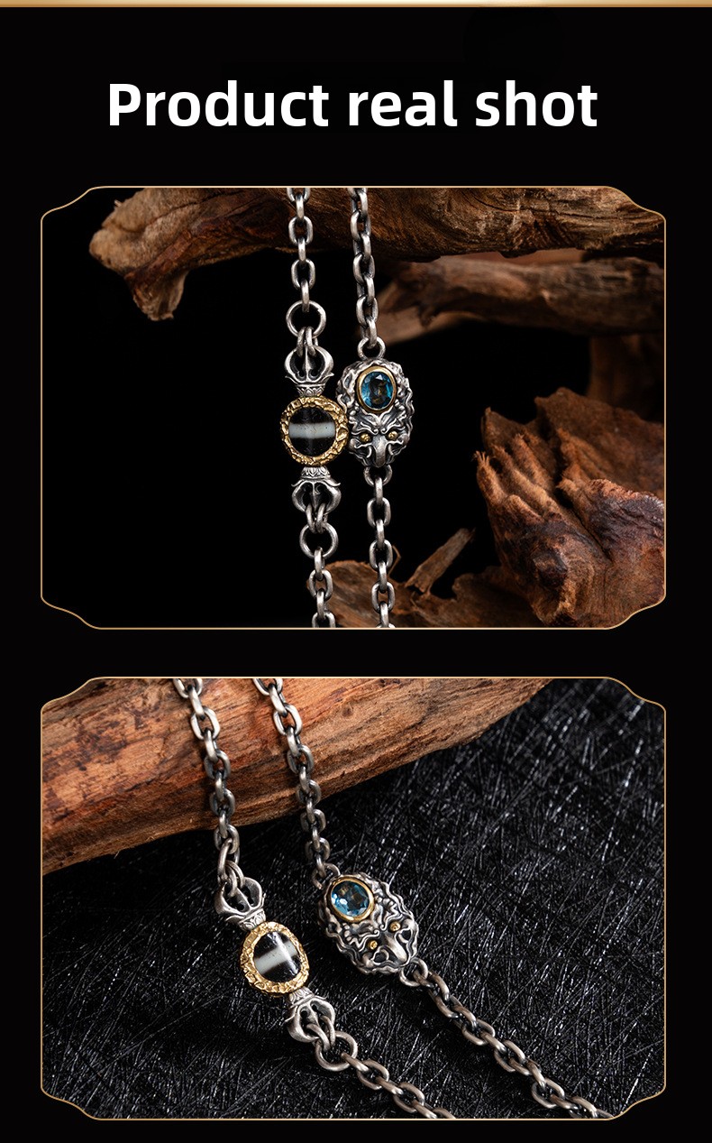 Tibetan Style Sterling Silver Big Peng Bird Gemstone Necklace